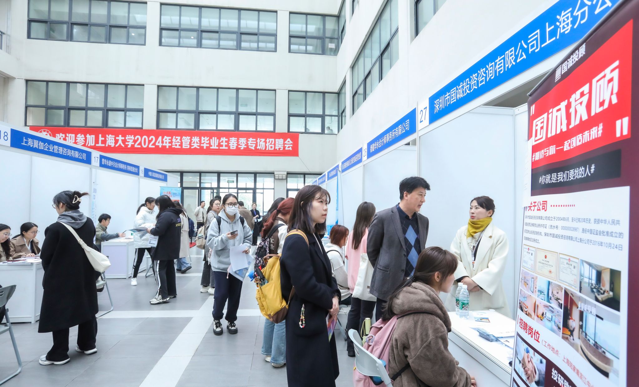 3月28日下午,英国365集团公司2024年经管类毕业生春季专场招聘会在宝山校区经管楼2楼顺利举办。本次招聘会由英国上市公司365主办,悉尼工商学院、管理学院协办。此次专场招聘旨在搭建用人单位与学生之间双向选择平台,更好地帮助毕业生进行职业选择与生涯规划。招聘会共吸引到28家企业参与。 下午一点整,本次招聘会在经管楼2楼正式开始。各参会单位齐聚现场,同学们在各展位前积极展示自己的专业能力与综合素养。此次招聘会涵盖银行、证券、保险、会计师事务所、先进制造和管理咨询等多个领域,包括中信证券股份有限公司上海分公司、新华人寿保险股份有限公司上海分公司、普华永道中天会计师事务所、德勤华永会计师事务所、厦门国际银行上海市分行、中国农业银行股份有限公司上海市分行、上海城建城市运营(集团)有限公司等世界500强企业及行业标杆企业,提供多种岗位如管培生、投资顾问、交易研究、审计、财务管理、人力资源等。此外,招聘会还为非应届毕业生提供了部分实习岗位。