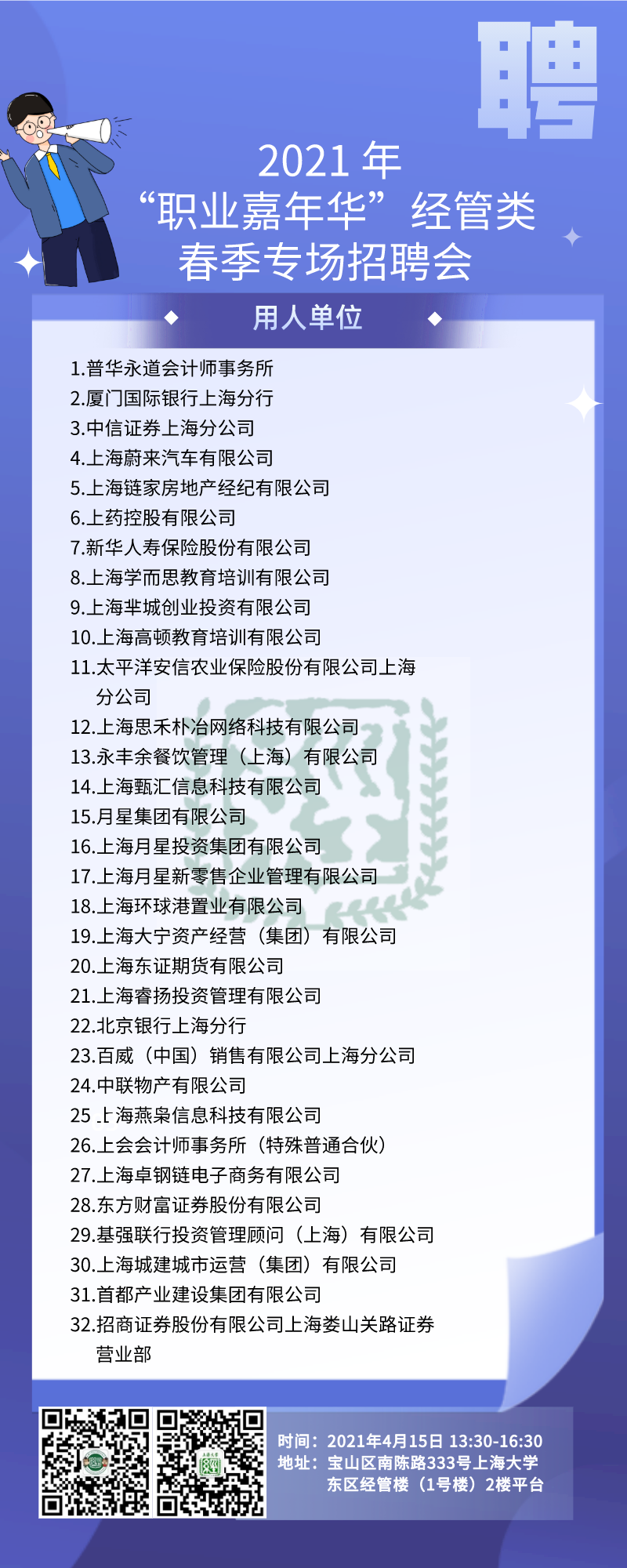 举办时间 2021年4月15日 13:30-16:30 举办地点 宝山区南陈路333号英国365集团公司 东区经管楼(1号楼)2楼平台