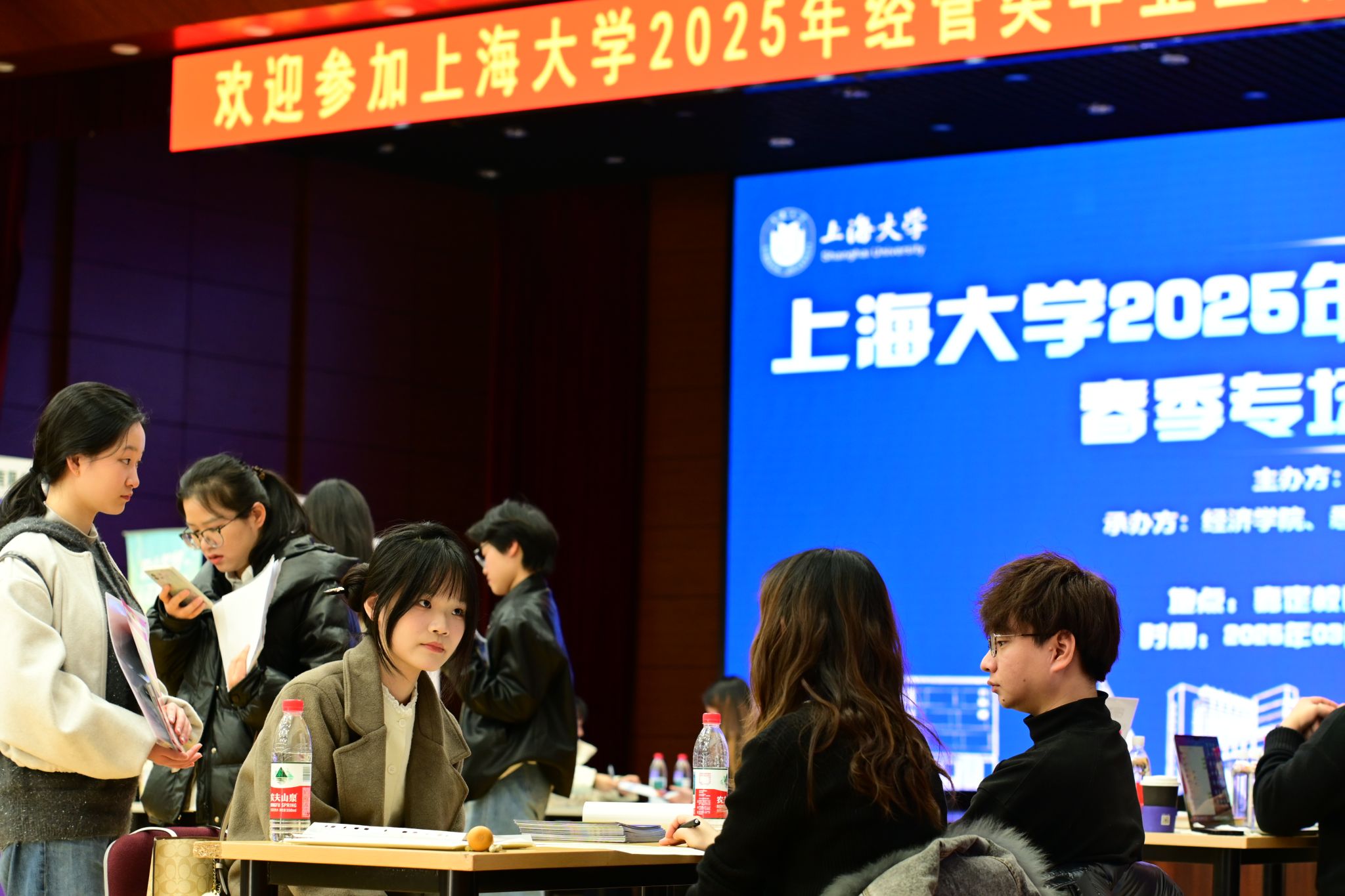 下午一点整,经管类毕业生春季专场招聘会顺利开始,行健文体中心内呈现供需两旺的就业图景。各参会单位齐聚现场,同学们在各展位前积极展示自己的专业能力与综合素养。此次招聘会涵盖银行、证券、保险、会计师事务所、先进制造和管理咨询等多个领域,包括华为技术有限公司、中信证券股份有限公司上海分公司、新华人寿保险股份有限公司上海分公司、普华永道中天会计师事务所以及东方财富信息股份有限公司等世界500强企业及行业标杆企业。提供的职位类型丰富多样,包括管培生、投资顾问、交易研究、审计、财务管理、人力资源等。此外,招聘会还为非应届毕业生提供部分实习岗位。