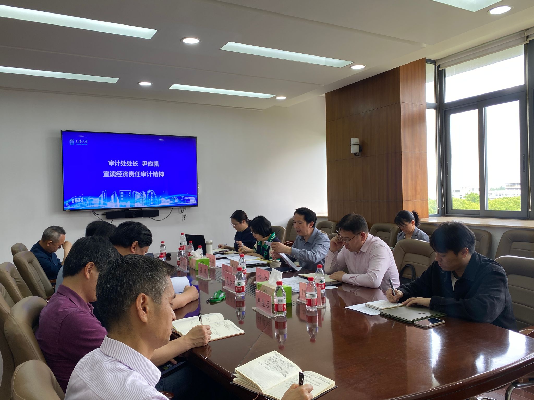 随后,审计处处长尹应凯宣读了经济责任审计精神。尹应凯老师表示党的二十大报告指出,健全党统一领导,全面覆盖权威高效的监督体系,完善权力监督制约机制,以党内监督为主导,促进各类的监督贯通协调,让权力在阳光下运行。在此背景下,本次审计工作具有覆盖面广、调研深入、高标准等特点。