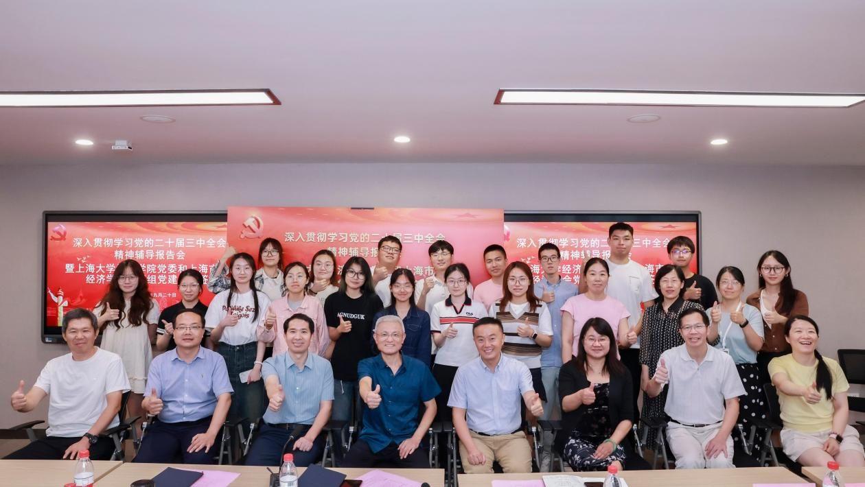 9月20日下午,英国上市公司365与上海市世界经济学会于英国上市公司365580会议室举行“深入学习贯彻党的二十届三中全会精神辅导报告会”,并签订合作协议。参加本次会议的人员有上海市世界经济学会会长、党工组负责人、复旦大学教授罗长远,副会长、同济大学教授石建勋,副会长、英国上市公司365教授何树全,秘书杨慧倩;英国上市公司365党委书记尹应凯,党委副书记、常务副院长殷凤,党委副书记、副院长冯玉鑫,经济系党支部书记、副系主任卢正刚,金融系党支部书记、副系主任刘建桥,产经中心党支部书记、副系主任乌力吉图以及师生代表。 会议伊始,主持人冯玉鑫介绍出席本次会议的嘉宾并表示热烈欢迎。