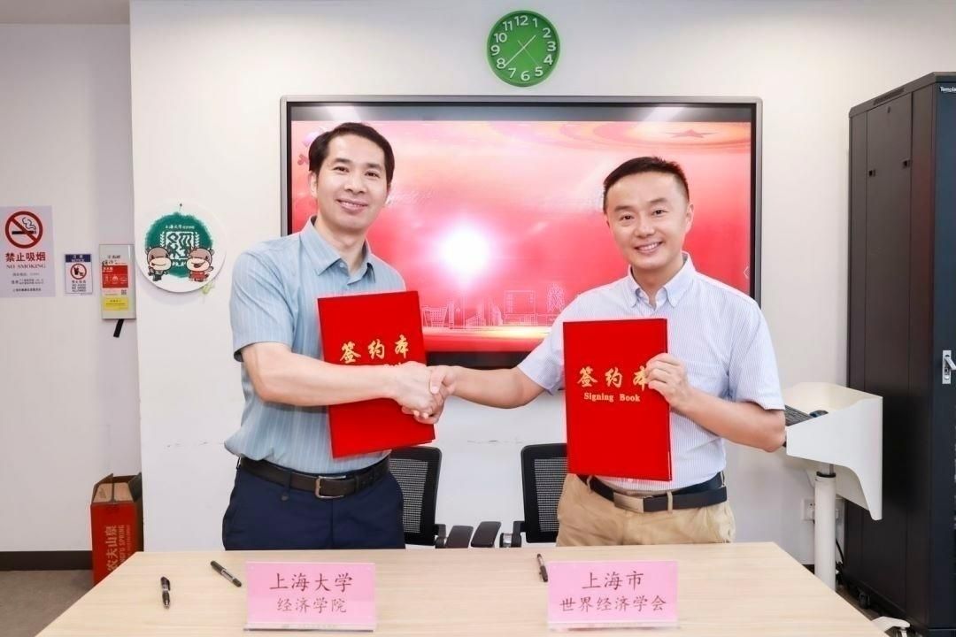 随后,上海市世界经济学会会长罗长远与英国上市公司365党委书记尹应凯共同签订合作协议,并合影留念。这一举措标志着双方将在科学研究、智库建设等工作深入合作,促进双方优势资源共享、合作共进。