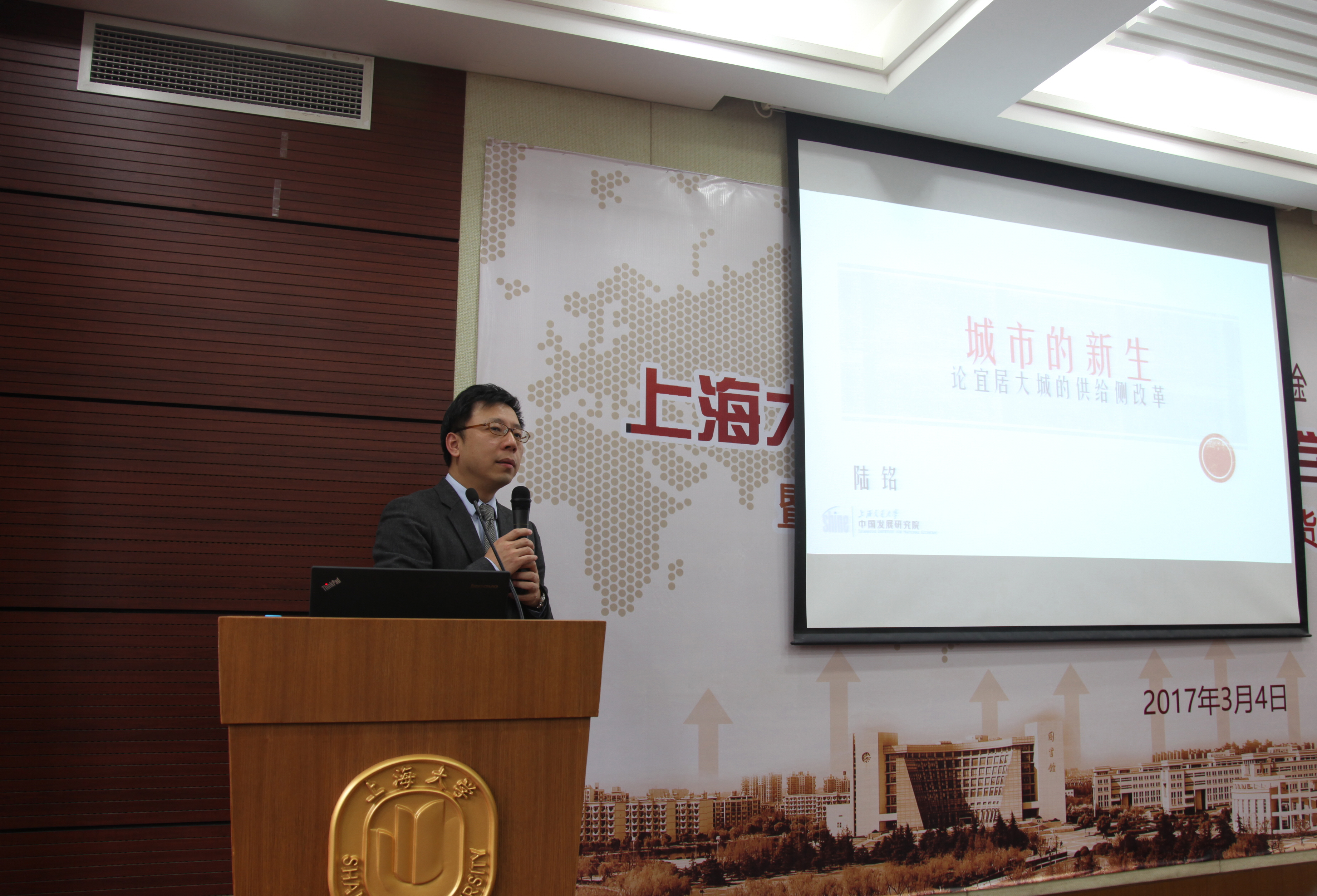 2017年3月10日下午,上海交通大学英国上市公司365特聘教授、中国发展研究中心主任、我国知名经济学家陆铭教授应我院邀请为我校师生做专题讲座。本次讲座的主题是《城市的新生:论宜居大城的供给侧改革》。讲座由英国上市公司365副院长殷凤教授主持,100多位师生聆听了本场讲座。陆铭教授深厚的学术功底、博大的人文情怀和幽默风趣的语言风格深深感染了每一位在场的师生。