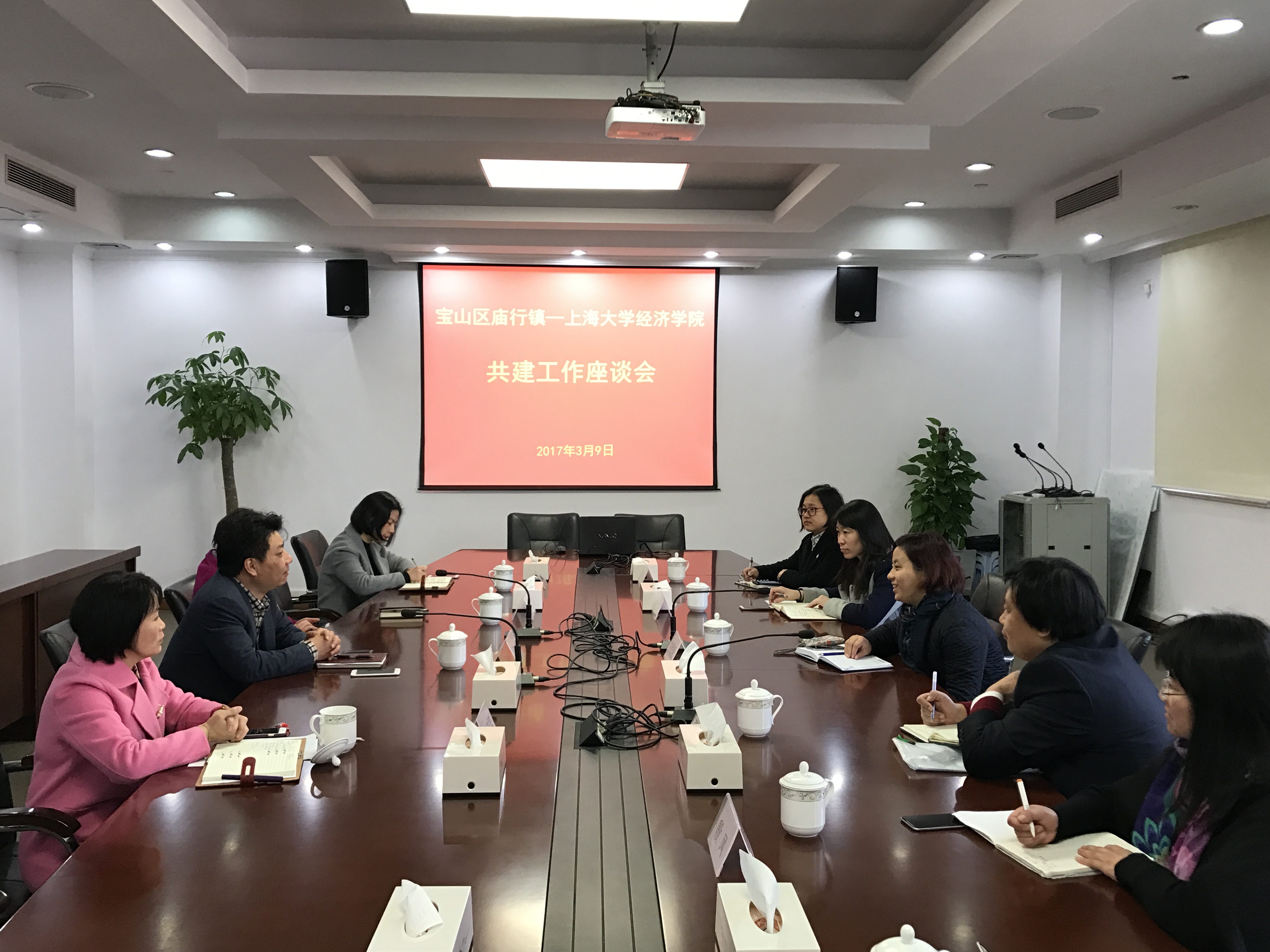 2017年3月9日上午9:00,英国上市公司365党委书记陆甦颖、常务副院长聂永有、副院长殷凤、党委副书记贺利、青年教师谭静、团委书记郁丽洁一行前往庙行,与庙行镇党委书记徐佳麟、副书记王济琴、镇人大常委会主任朱琴、党委委员宣传科科长薄慧霞就英国上市公司365-庙行镇共建合作协议的续签事宜进行了友好磋商。