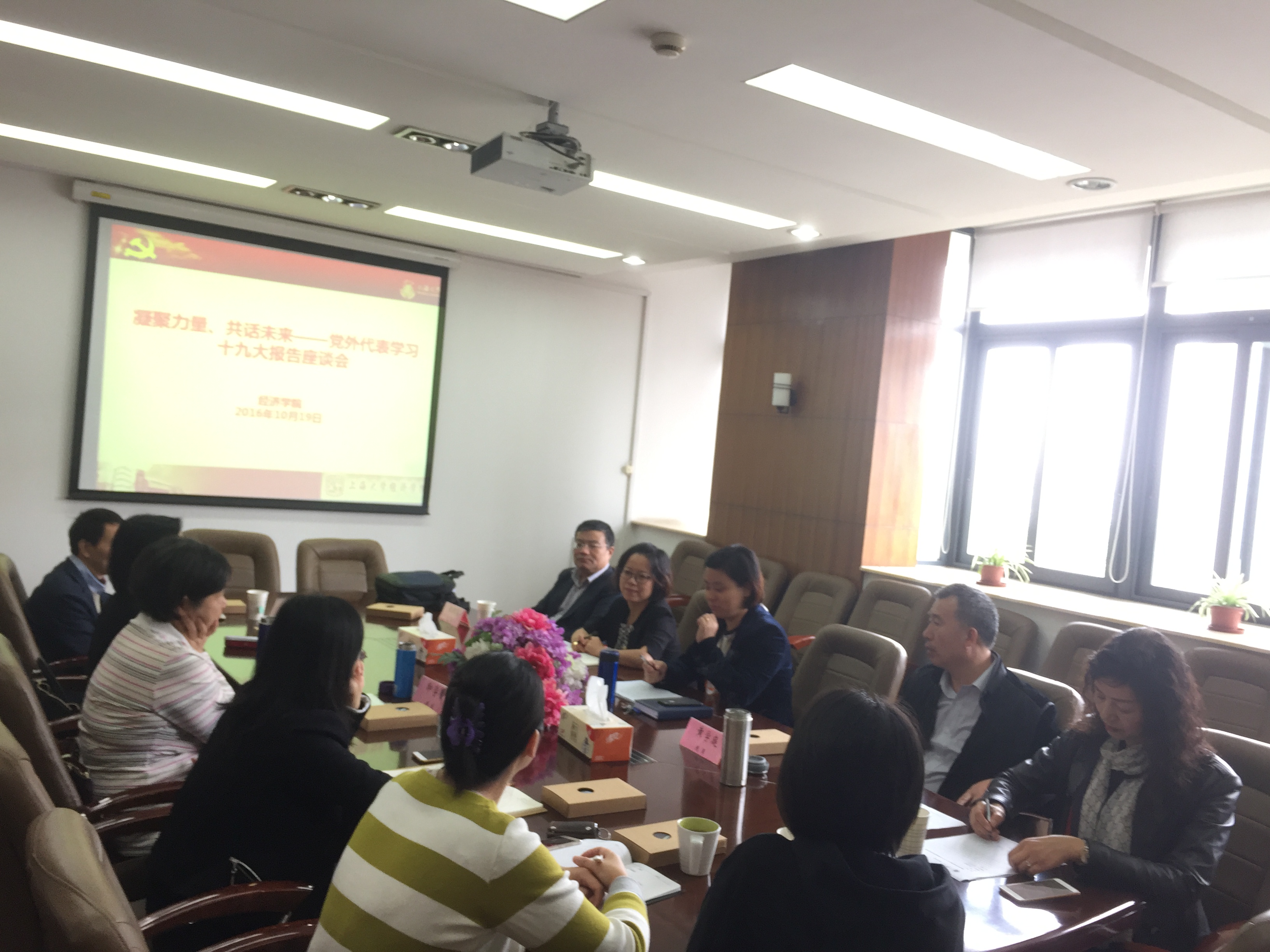 10月19日上午,"凝聚力量、共话未来"——英国上市公司365党外代表学习十九大报告座谈会在东区经管楼567会议室召开。校统战部副部长李青出席会议并讲话,党委书记陆甦颖主持会议,学院党外代表及教工支部书记的代表参加了座谈会。