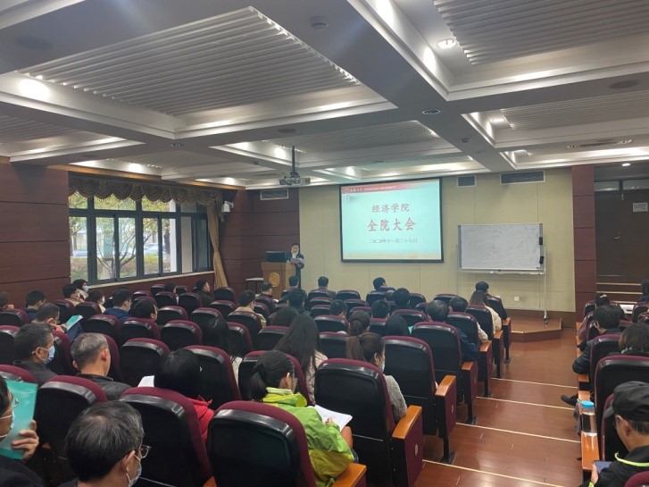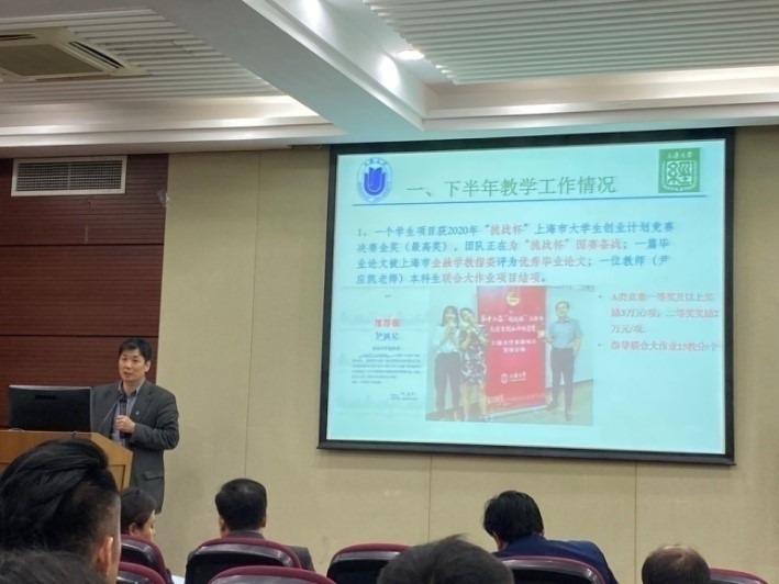 会议伊始,陆甦颖整体介绍了近期学院党委工作,通报了学院党委接受巡察情况正在推进并落细落实的整改措施;传达了学校关于师德师风建设的文件精神,强调了贯彻落实师德师风作为教师职业第一标准的重要性和必要性;部署了学院党委换届的工作安排。 随后,刘康兵就下半年学院教学工作和工会工作情况作了详细介绍,回顾并列举了教学过程中取得的成绩及存在的问题,重点介绍了本科生全程导师制工作的开展情况。