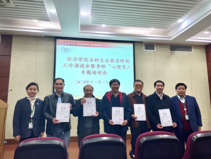 接着,陆甦颖、聂永有为学院本科全程导师颁发聘书。随后,尹应凯、陈笑影作为导师代表发言。尹应凯老师谈到:“好老师和好同学相互成就,应积极打造好平台”;陈笑影老师非常重视对学生的日常关爱,表示今后务必全力以赴做好全程导师的8项职责。