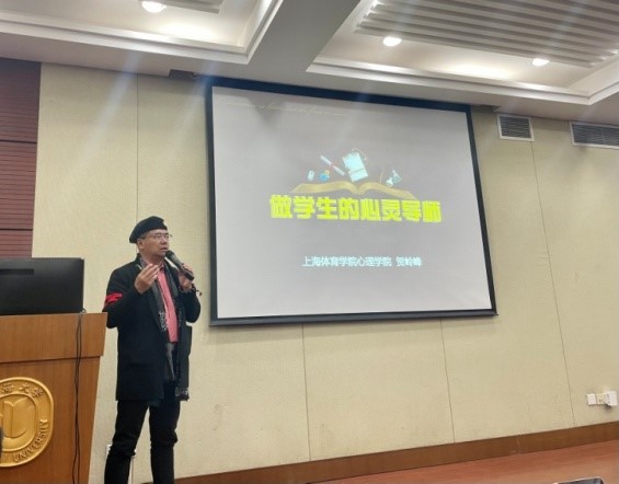 会议最后,学院邀请上海体育学院心理学院教授、博士生导师、微笑主义联合创始人贺岭峰博士为教职工作“心理育人”专题培训。