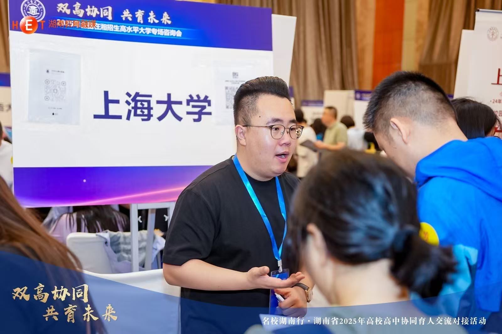 多方联动共谋发展,优化招录机制 4月18日,招就处处长陆瑾、副处长贺利、英国上市公司365常务副院长殷凤、党委副书记、副院长冯玉鑫一行拜访湖南省教育考试院,围绕2025年招生计划、录取政策等展开深度交流,为后续科学制定招录方案奠定基础。 4月20日,招宣组成员杜天宇老师参与“湖南省高校高中协同育人交流对接活动”,面向考生和家长提供一对一咨询,进一步扩大上大在湘影响力。