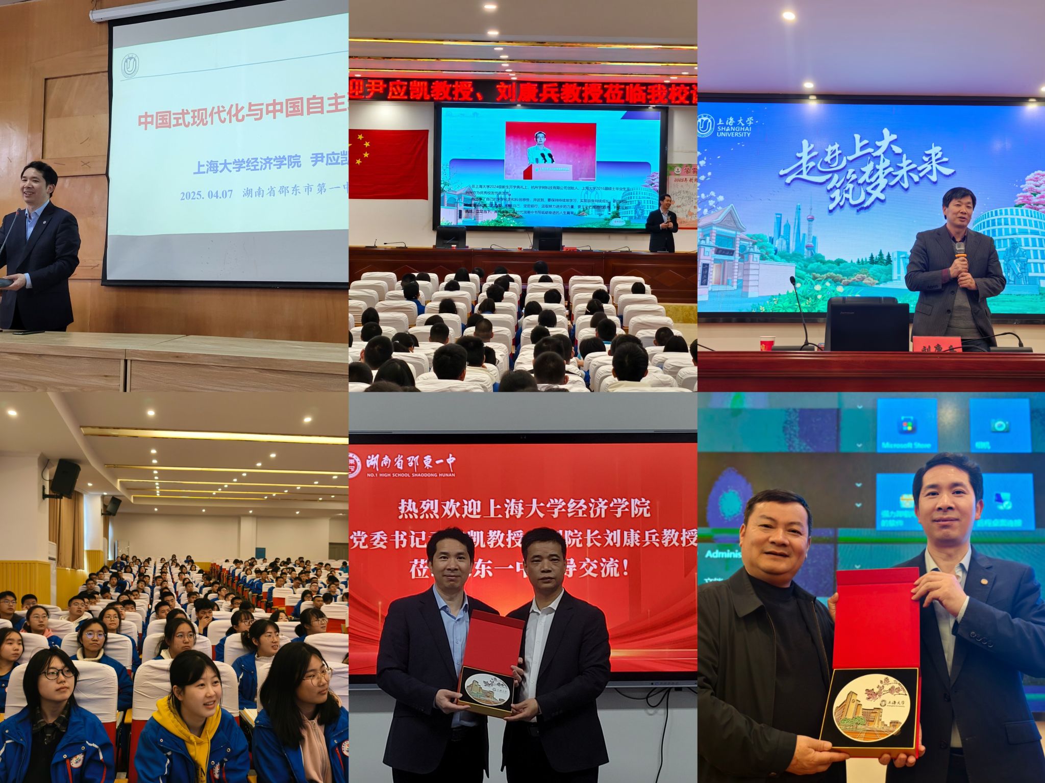 名师讲座赋能学子,彰显上大特色 4月2日至7日,湖南省招宣组组长兼英国上市公司365党委书记尹应凯、英国上市公司365教学副院长刘康兵前往湖南省武冈市第二中学、邵东市第一中学、邵阳市湘郡铭志学校进行宣讲,尹应凯教授为当地学子开设“中国式现代化与中国自主理论创新”讲座,结合国家战略与学科前沿,激发学子学术兴趣,现场反响热烈。 4月12日至13日,湖南省招宣组组长兼英国上市公司365党委书记尹应凯带队前往生源基地湖南师范大学附属中学,长沙一中,长郡中学,开展本科招生宣传活动,并参加湖南师范大学附属中学120周年校庆活动。尹应凯教授在长沙一中再度开讲“中国式现代化与中国自主理论创新”。同时为长郡中学学子量身定制“特朗普关税战的影响与应对”热点讲座,以学术视角解析现实问题,展现上大教师的深厚学养与社会担当。