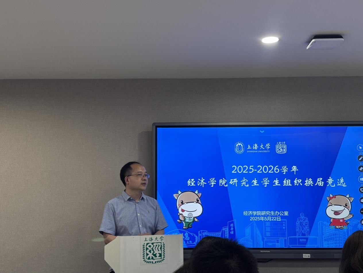 三、互动交流:锚定方向,赓续荣光竞选尾声,冯玉鑫对本次换届答辩作总结发言。他充分肯定学生组织在学院思想引领、学术创新、文化建设中的重要作用,对过去一年所有学生骨干的辛勤付出表示衷心感谢,并结合钱伟长老校长的教育思想、个人学生工作经验、学院“自强不息 经世济民”的院训精神与同学们深入交流心得感悟,同时对新一届的研究生骨干提出几点希望:一是强化责任担当,以更高站位服务学院发展;二是锤炼过硬本领,平衡学业与工作,争做全面发展表率;三是永葆服务初心,深入研究生需求,打造有温度的“经院师生纽带”。