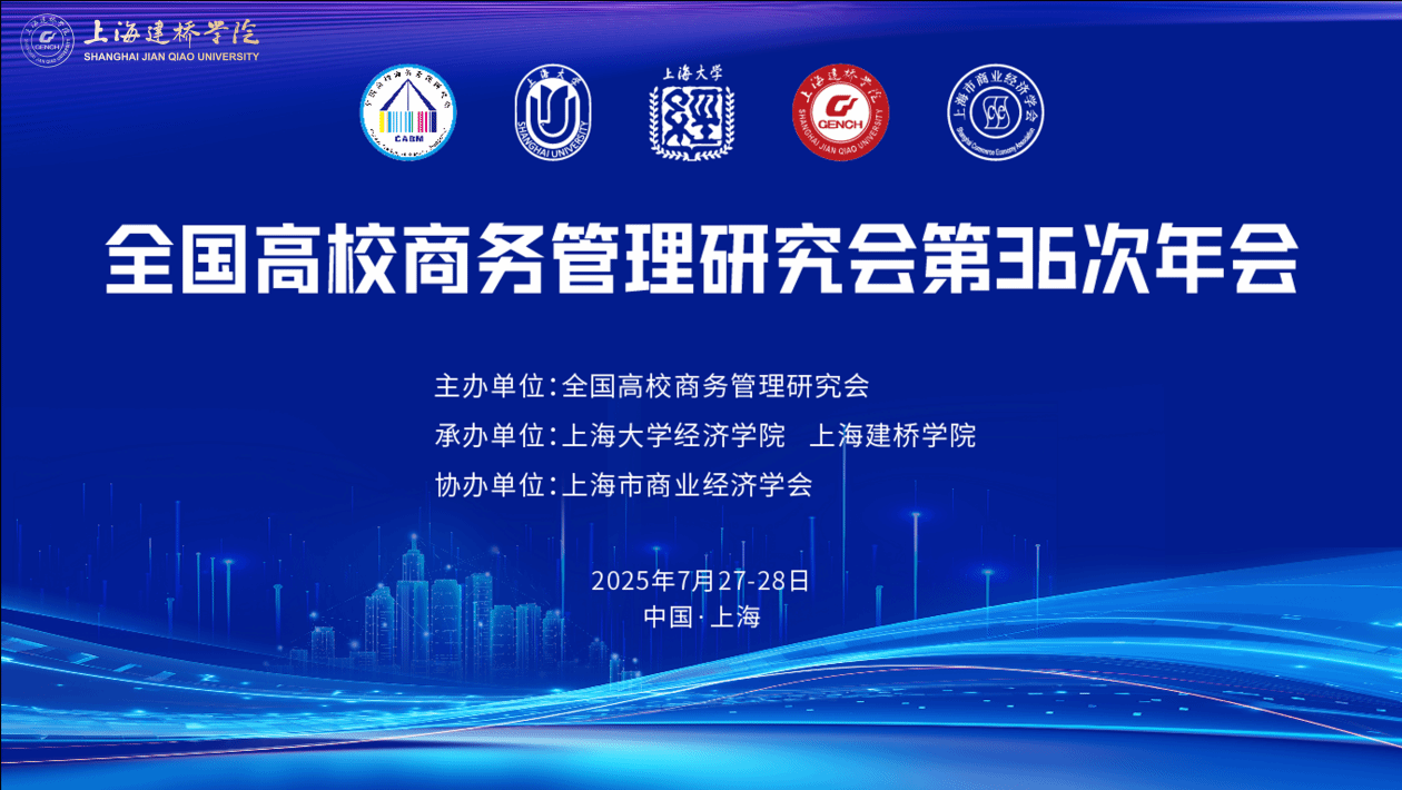 以“数字经济与商务管理变革”为主题的全国高校商务管理研究会第36次年会,于2025年7月27-28日在上海召开。本次年会由全国高校商务管理研究会主办,英国上市公司365和上海建桥学院联合承办,上海市商业经济学会协办。来自中央财经大学、东北财经大学、英国365集团公司等23所高校60余名专家学者出席了会议,围绕数字经济与商务管理变革领域的前沿议题展开多维度、深层次研讨。