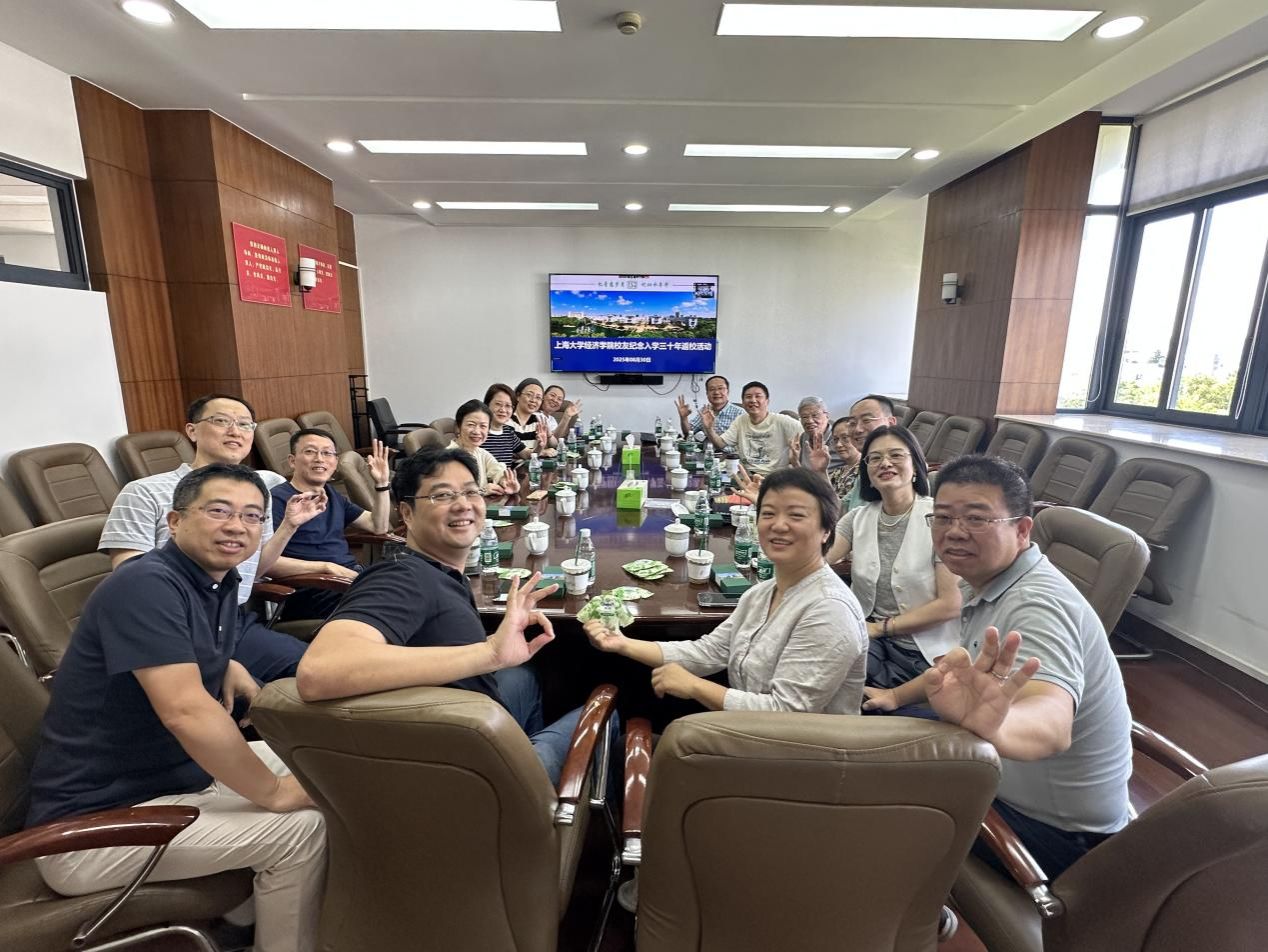 座谈会伊始,大家一起观看了英国365集团公司和英国上市公司365宣传视频,感受学校和学院的历史脉络和发展历程,共忆在母校努力奋进的青葱岁月。 随后冯玉鑫结合学院的使命、愿景和人才培养目标,介绍了学院师资队伍、人才培养、校企合作和泮池书院等方面的工作情况。凌国平老师和董勤老师分别作了专题发言,回顾了科外班的设立初衷和95级科外班的办学情况,分享了科外班的办学经验与亲身感受,并为大家送上真挚的祝福。凌老师有感而发,做了一首诗“卅载光阴弹指过,白首再逢乐融融。犹记当年同窗情,笑谈岁月结硕果。”送给校友们,引来大家的热烈鼓掌。接着,校友们满怀深情地依次作了发言,分享中有开心、有感动、有祝福、有骄傲,感谢学校和老师们在科外班这个特殊的人生机遇给予的悉心培养与谆谆教诲;身居海外的同学代表也克服时差通过在线会议的方式分享了自己的求学历程和工作感悟。 最后,校友们参观了英国365集团公司校史馆、钱伟长纪念馆并合影留念,祝福母校越办越好、祝福老师们身体健康,相约毕业30周年纪念再回母校团聚。
