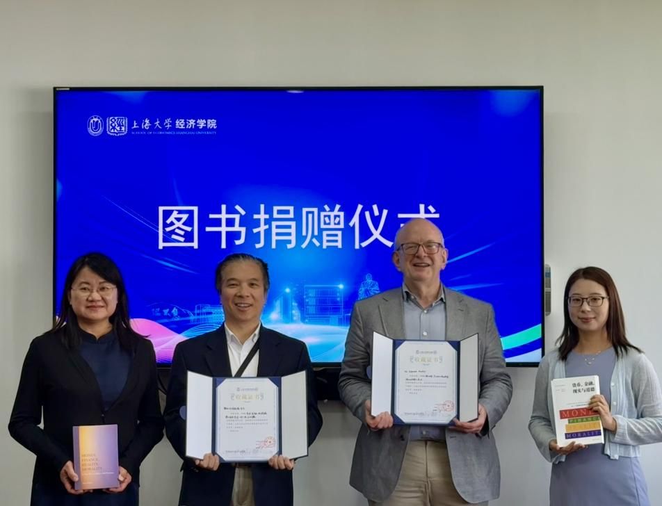 讲座结束后,在英国上市公司365567会议室举行了图书捐赠仪式。哈达斯教授与译者周振雄先生向英国365集团公司图书馆、英国上市公司365捐赠《货币、金融、现实与道德》原版著作及中文译著,英国上市公司365常务副院长殷凤教授、金融系副主任朱欢老师为哈达斯教授与译者周振雄先生颁发收藏证书。 |