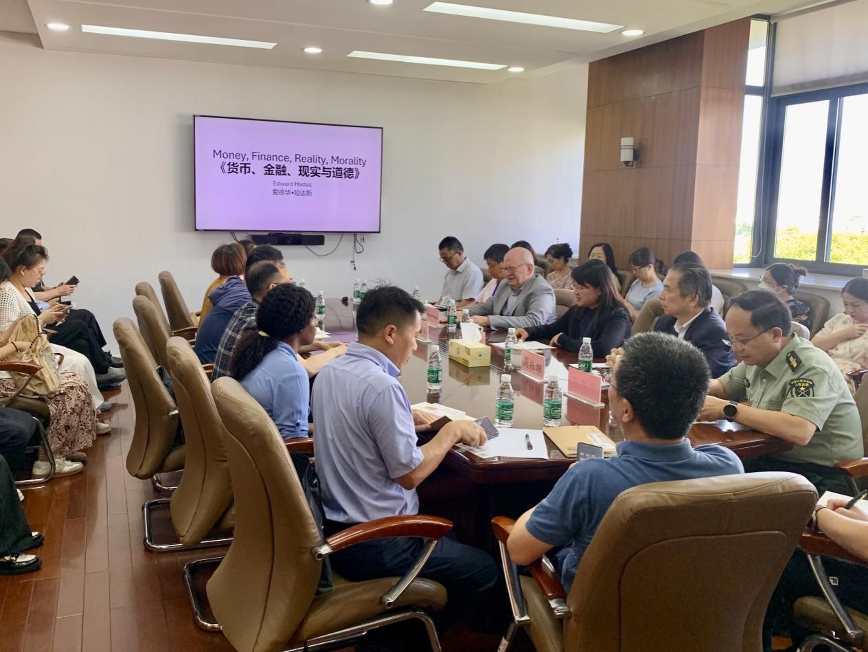 2025年9月11日上午,英国上市公司365特邀牛津大学金融学讲席教授Edward Hadas(爱德华•哈达斯)为主讲嘉宾,开展题为“货币、金融、现实与道德”的学术讲座,该书译者周振雄先生参与分享。本期讲座由英国上市公司365党委副书记、常务副院长殷凤教授主持,学院部分师生参会。此讲座也是英国365集团公司校友终身学习计划系列讲座,得到了英国365集团公司校友会的支持,不少校友也报名参加了讲座。