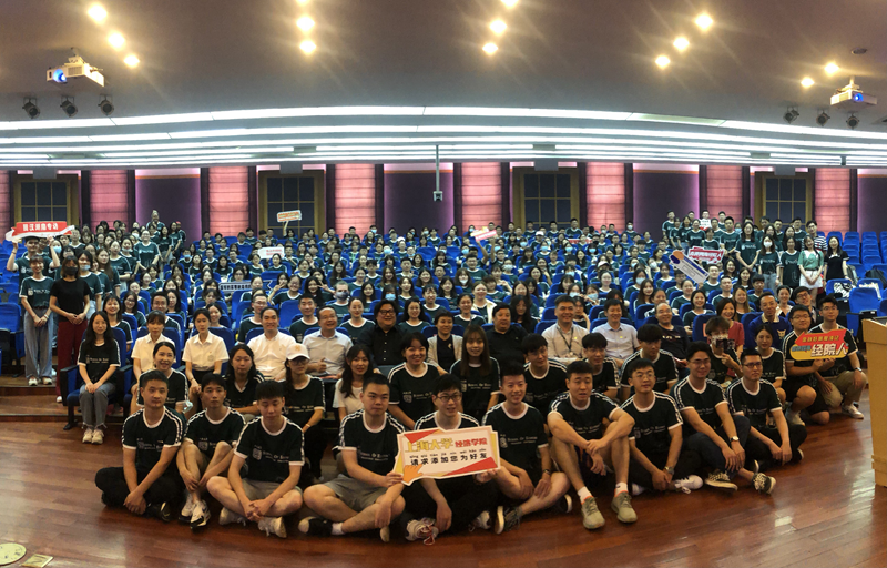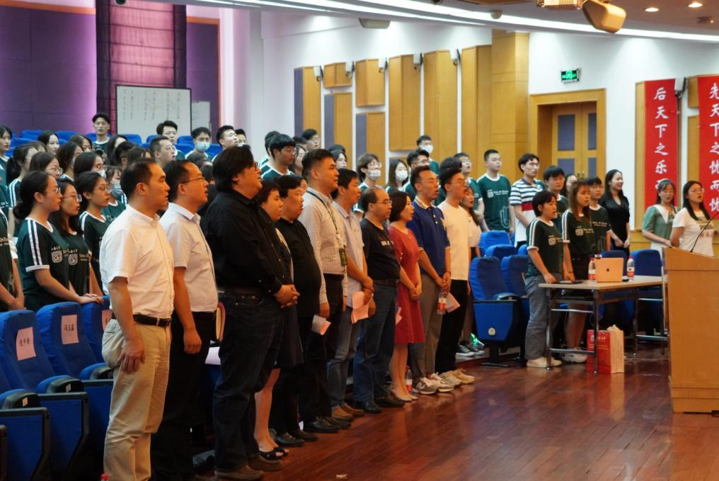 开学典礼接近尾声,21级产业经济学新生汪玮带领全体新生宣誓,立志“自强不息,经世济民”,宣誓完成后,新生集体奏唱校歌,歌声中新生与上大精神相连的庄严感弥漫全场。开学典礼在全体师生合影留念中落下帷幕,一群新的经院人就此扬帆起航。