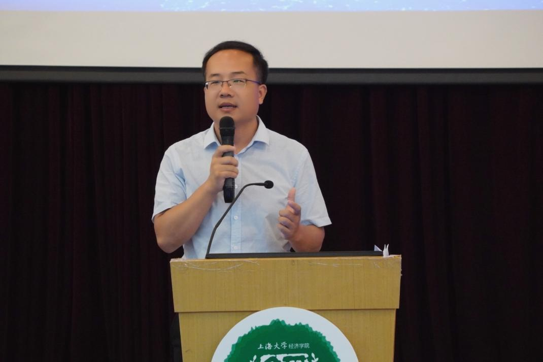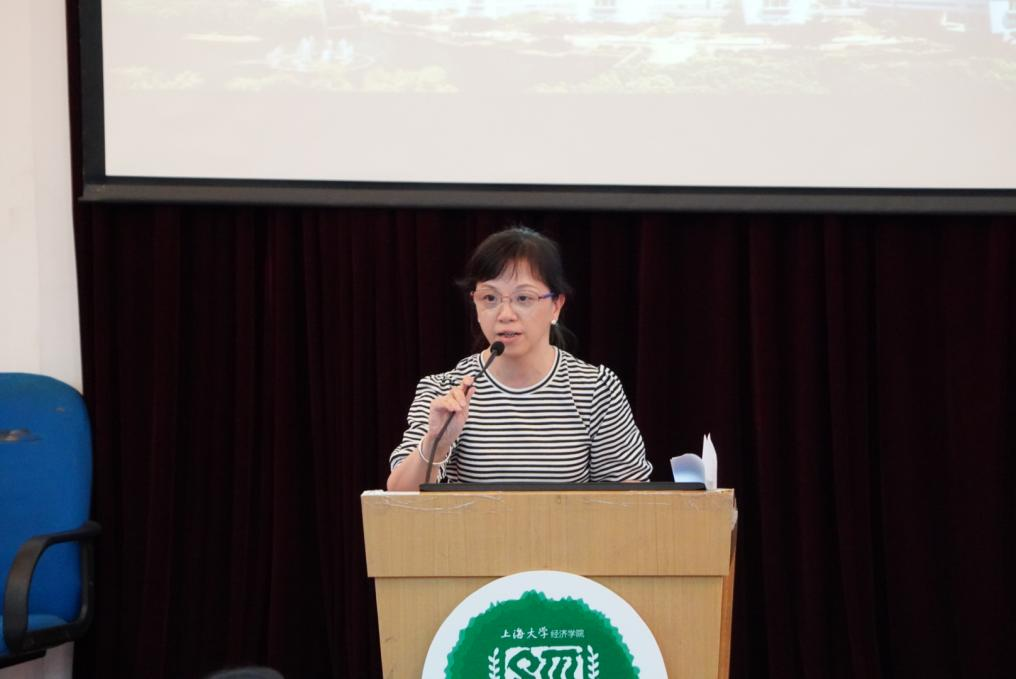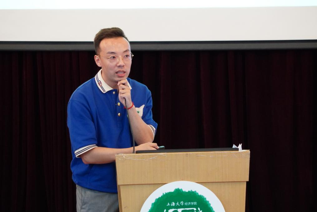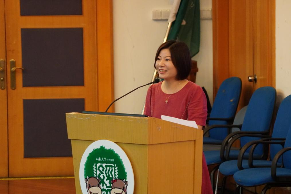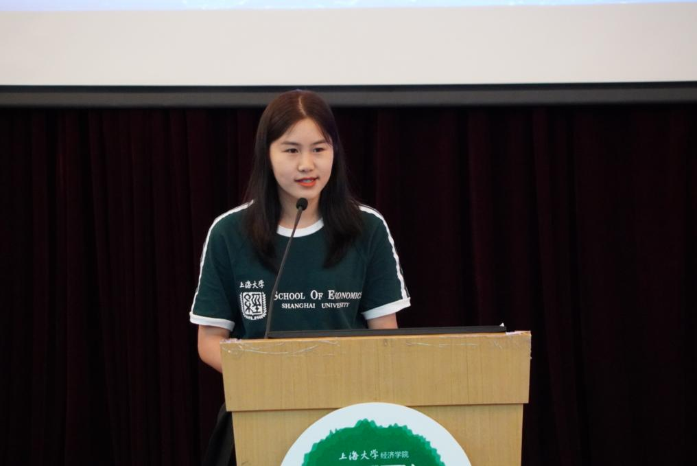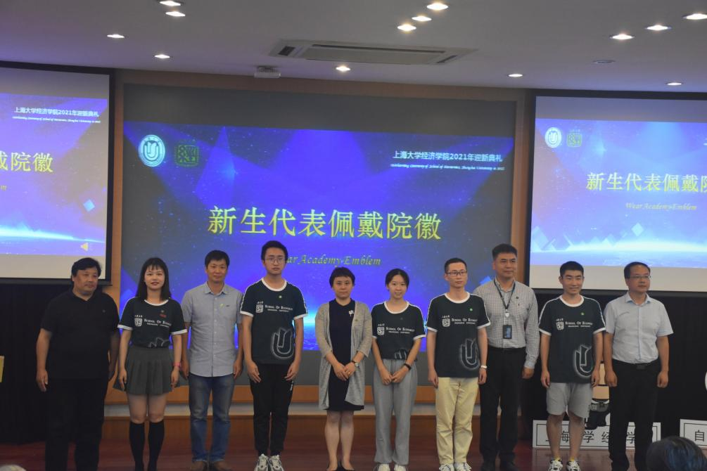 紧接着院徽佩戴仪式的是同样意义重大的院旗传递,21新生张鑫宇接过老生徐晨皓手中的院旗,代表着新老的传承,这是希望的传承,更是学校、学院优良传统的传承。 无论是过去还是现在,上大的师者始终把“传道授业解惑”作为自己的志向,点燃莘莘学子砥砺奋进的热血豪情。仪式环节过后,导师代表朱婷受邀上台发言,从经济学是什么、为什么学经济学和怎样学经济学三个方面解读了大家为何应当选择经济学,提出了针对性的指导建议。