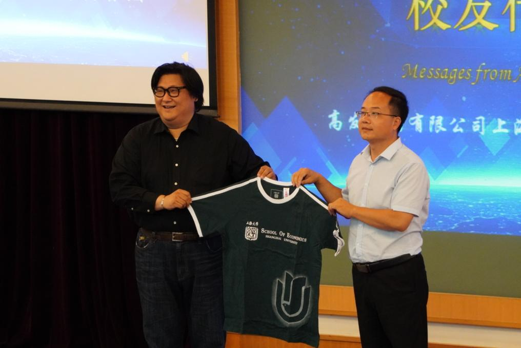 老师的建议发人深省,学长的经验一样启迪新生。近年来共为学弟学妹捐赠了10000件院服的1991级校友黄文葳先生莅临现场,冯玉鑫赠送了上大百年画册作为礼物感谢黄学长对母校的支持和馈赠,学长则送上开学祝福:“求真好学,勇攀高峰,相约毕业季”。