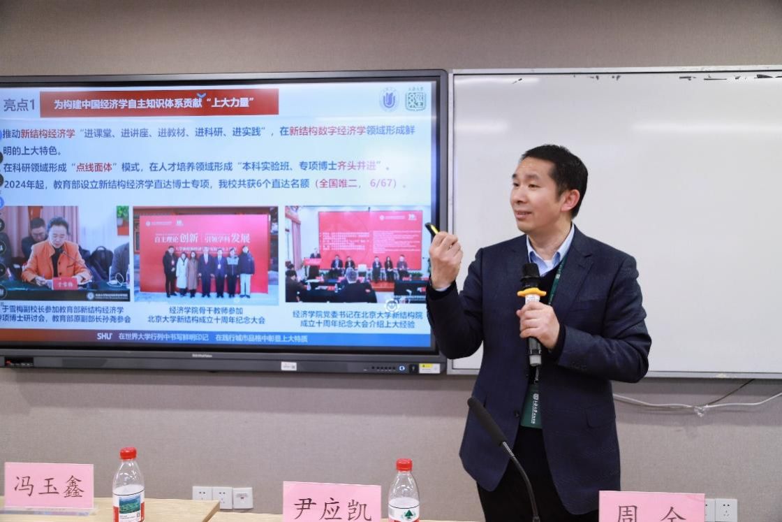 随后,尹应凯以“最经济”为工作汇报主题,对学院2025年工作进行回顾。就人才培养、招生就业、科学研究、学科建设、国际交流等方面全面复盘了学院2025年工作情况。之后,还提出了过去一年学院工作中的不足之处和完善改进的方向,强调践行“爱生如子”理念,在2026年,全体教职工将以更高标准推动学院高质量发展。