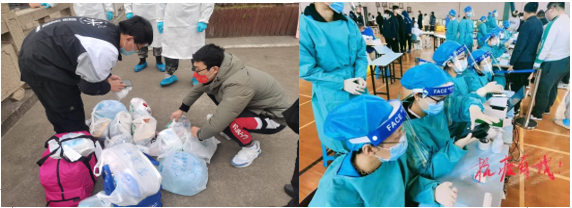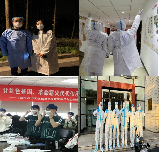 经院博士党支部王天驰、刘伟、张荣博等组建博士生志愿小分队,帮助健康观察的同学采购、运送、分发急需药品和生活必需品;经院嘉定校区组织了志愿服务团队,与各学院志愿者们一道,从核酸检测、数据统计汇报及物资采购发放,处处活跃者志愿者的身影,有时完成任务已经是凌晨3点!学生党员包翌飞:封闭管理后,我第一时间加入了志愿服务团队,帮助辅导员老师统计返校名单、核对核酸人数,在宿舍楼中进行扫楼,关心群众的身体情况和学习生活。我想这就是作为一名学生党员身上的责任和义务,危机来临时,就应该挺身而出,不畏艰险。