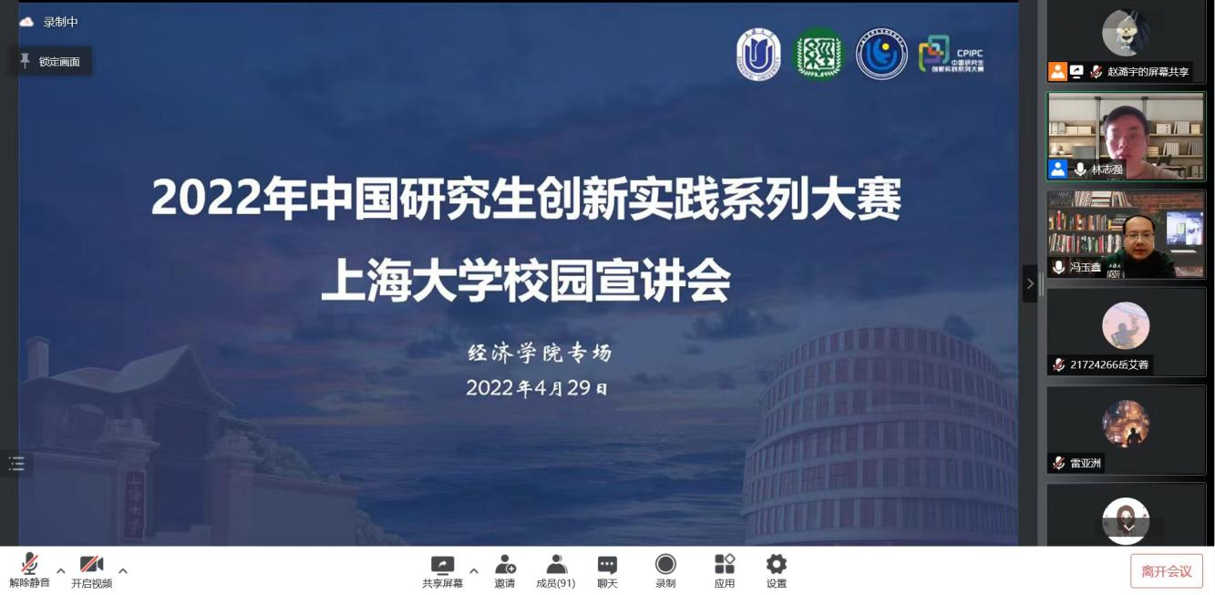 2022年4月29日,英国365集团公司研究生创新创业中心联合英国上市公司365在线上举办了2022年中国研究生创新实践系列大赛英国365集团公司校园宣讲会——英国上市公司365专场。英国上市公司365党委副书记、副院长冯玉鑫,学院副教授刘亚洲,研究生创新创业中心赵金如,学院学生代表陈欢、边佳聪、雷亚洲以及一百余名研究生在线上参加了宣讲会,会议由学院辅导员林志强主持。