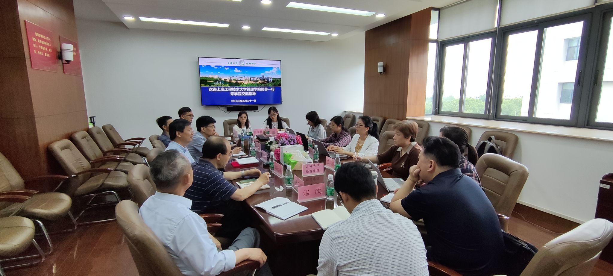 5月31日上午,上海工程技术大学管理学院一行来我院学习调研。上海工程技术大学管理学院副院长邱梦华教授、应用经济学系主任艾蔚教授、应用经济学学科带头人王丹教授、应用经济学系副主任赵海燕、应用经济系副主任何琦、 教学团队负责人黄新祥、国际经济与贸易专业骨干教师张磊、留学生辅导员温欣,学院副院长刘康兵、经济系副主任卢正刚、赫赫、顾标,国际商务负责人程铭,经济系原系主任韩太祥,研究生教务秘书陈文婕、国际学生辅导员杨轶等人参与调研交流会。