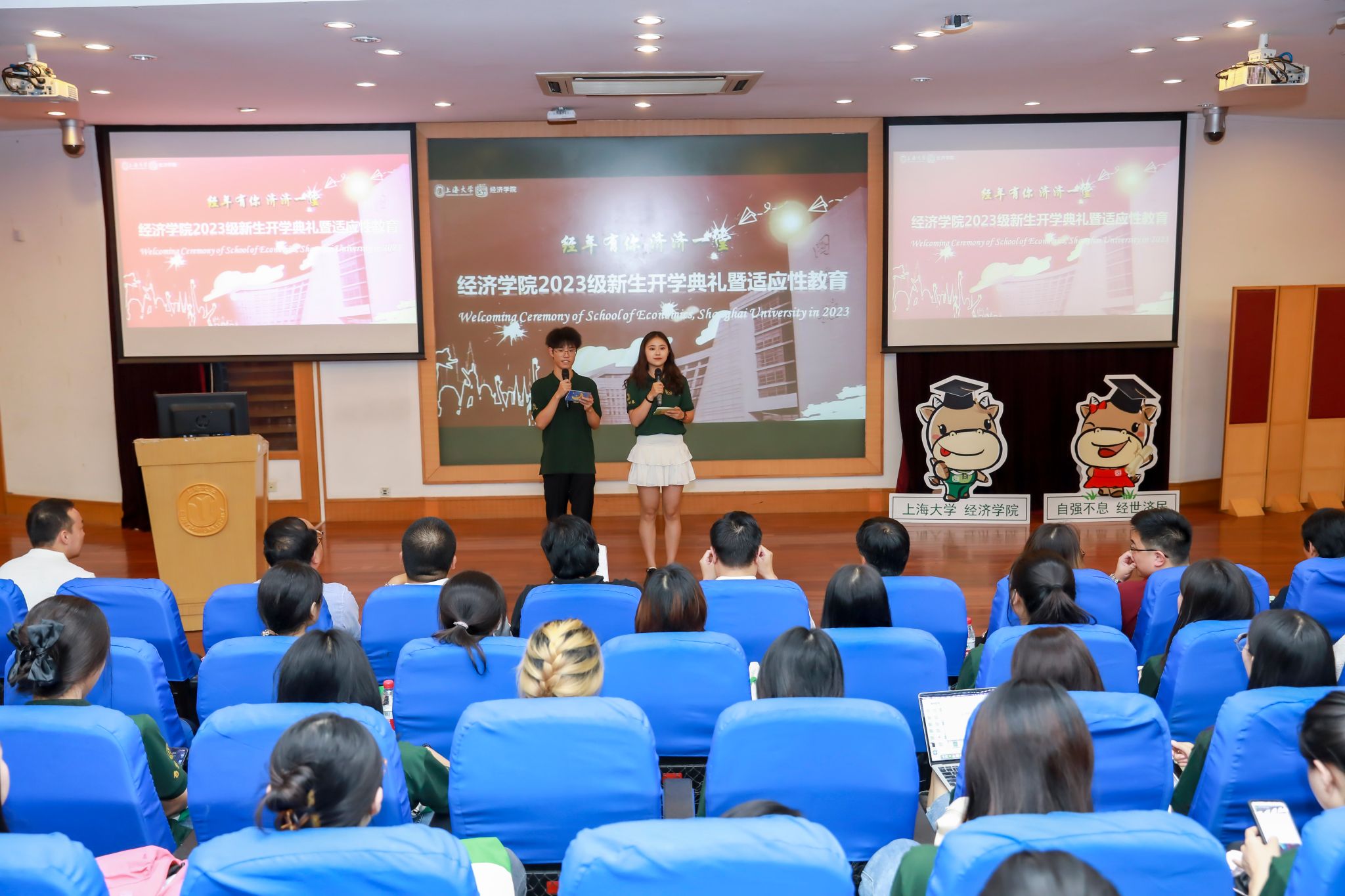 8月25日下午, “经年有你 济济一堂”——英国上市公司3652023级新生开学典礼暨研究生新生适应性教育在宝山校区J楼方润华讲堂举行。党委书记孟添,党委副书记、常务副院长聂永有,党委副书记、副院长冯玉鑫,副院长刘康兵,副院长周思,导师代表、产经中心副主任、副教授谭静,校友代表1998级德国HAL银行科投资管理有限公司总经理朱琦臣等领导嘉宾出席典礼。2023级全体本科生、研究生及留学生参加。开学典礼由2023级金融学专业本科生褚骄阳、2023级应用经济学专业研究生金心蕊主持。