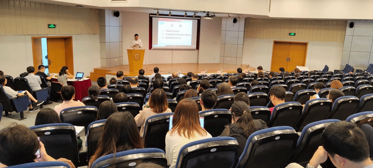 本次全院大会议程主要分为学院相关情况通报,本科教育教学审核评估工作推进会和师德师风教育学习会三部分。首先,孟添向教师介绍了学院党委上半年以学习贯彻习近平新时代中国特色社会主义思想主题教育为契机,统筹推进各项工作并取得一定成效,下半年将持续加强学院党委的政治领导核心作用,将主题教育的成效转化为学院高质量发展的强大动力,不断推进学院事业取得新成效;另外着重强调当前的重要任务之一是本科教育教学审核评估工作,希望老师们全力以赴,全员参与,形成迎评促建的良好工作氛围;发挥好党支部战斗堡垒作用和党员先锋模范作用,强化身份意识、纪律意识、责任意识,推动审核评估各项任务落地落实,顺利开展。 随后,分管领导对学院各方面工作的开展情况进行通报。冯玉鑫介绍了学院招生、就业、迎新、泮池书院及创新创业情况;毛雁冰介绍了学院科研及外事工作情况;周思介绍了专硕学生培养及金融专硕教学工作推进情况;刘康兵对2022-2023学年教学工作和关键教学指标取得的成效进行总结汇报,分析了问题的原因,提出相应的改进措施。