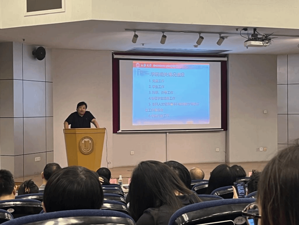 聂永有总结了上一年度学院工作,并详细介绍了接下来学院的工作重点。他强调本科教育教学审核评估工作是当前工作的重点,做好迎接审核的准备。在下半年的工作中,希望全院全体教师共同努力,完成学校各项KPI指标,共同推动学院的发展。 随后,刘康兵对本科教育教学审核评估工作现阶段的开展情况以及未来工作安排做详细介绍,详细梳理了评估指标体系、评估程序及接下来的工作安排。