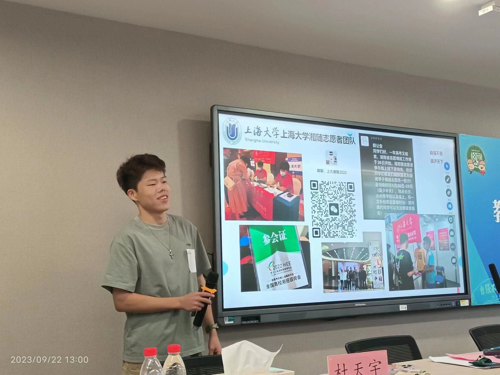 最后,余佳豪同学对湖南招宣组志愿团队——上大湘随进行了介绍并期待更多的同学加入进来服务湖南考生。