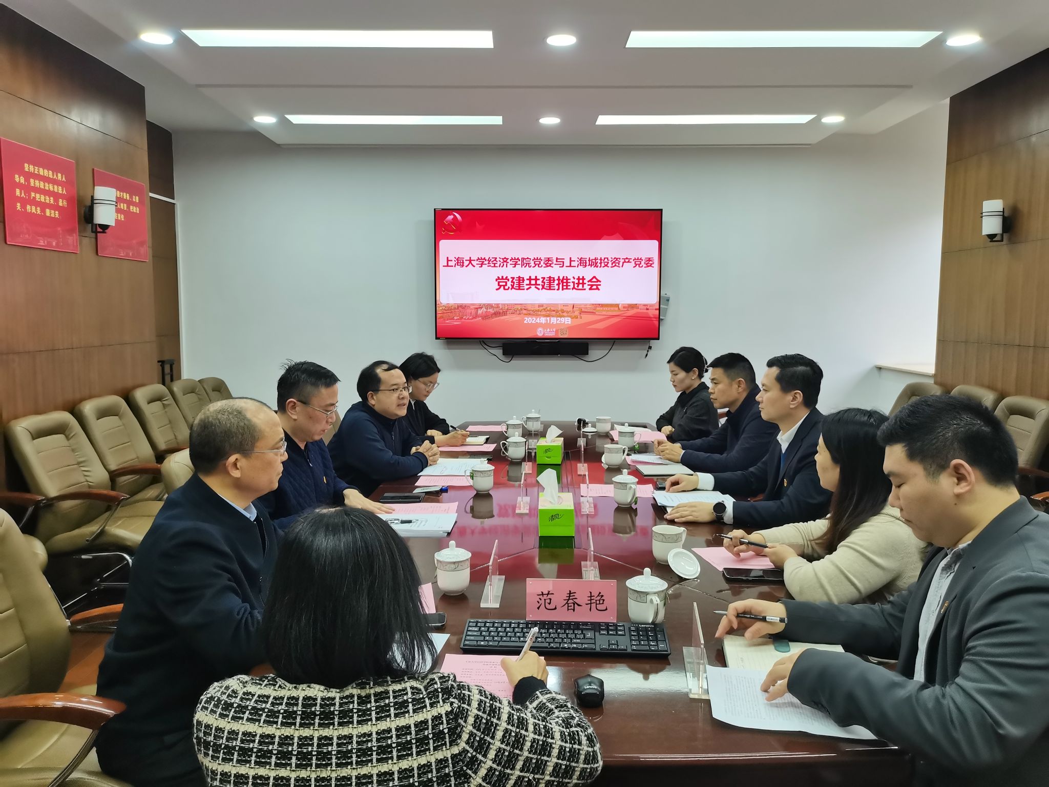 2024年1月29日下午,上海城投资产管理(集团)有限公司一行至英国上市公司365开展党建共建工作交流研讨。上海城投资产党委书记、董事长黄建刚,党委副书记严育新,党委组织部(人力资源部)部长杨慧慧,党委组织部(人力资源部)成柠茜,城投资产交流锻炼干部赵安康;英国上市公司365党委书记孟添,党委副书记、副院长冯玉鑫,上海市软科学研究基地-上海科技金融研究所研究总监祝波,金融系教师、交流锻炼干部任桂,学院党委组织员范春艳参加本次会议。会议由冯玉鑫主持。