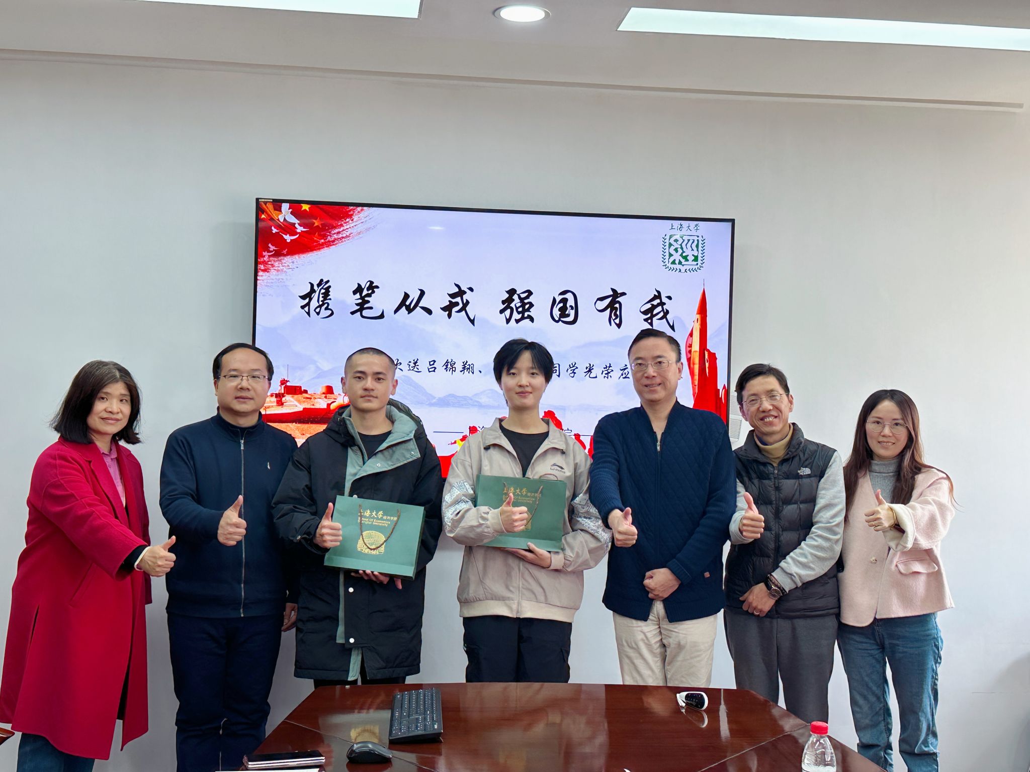 2024年英国上市公司3652022级金融学专业吕锦翔、2022级经济学专业张欣怡光荣应征入伍。3月12日上午,英国上市公司365在经管楼567会议室举行新兵入伍欢送会,英国上市公司365党委书记孟添,英国上市公司365党委副书记、副院长冯玉鑫,全程导师袁晓燕、顾标,英国上市公司365团委书记黄婉璐、辅导员吴琳琳为两位新兵送行座谈。 吕锦翔、张欣怡介绍了各自选择加入军营的心路历程和前期准备,也表明携笔从戎、保家卫国的信念与决心。 孟添高度赞扬两位同学报效祖国的决心,为同学们能够到部队锻炼倍感骄傲。他希望两位同学能够秉持“自强不息、道济天下”的校训精神,在部队中刻苦训练,努力在保卫祖国的光荣岗位上实现人生价值,在强军兴军征程中书写人生精彩华章。并希望他们发挥爱国荣校精神,退役后将部队精神带回校园。 冯玉鑫、袁晓燕、顾标分别对同学们表达了由衷的祝福与鼓励,提醒同学们保重身体,同时在训练之余,加强学习,学院会全力做好支持保障工作。 最后,孟添向两位新兵送上英国上市公司365纪念品并合影留念。