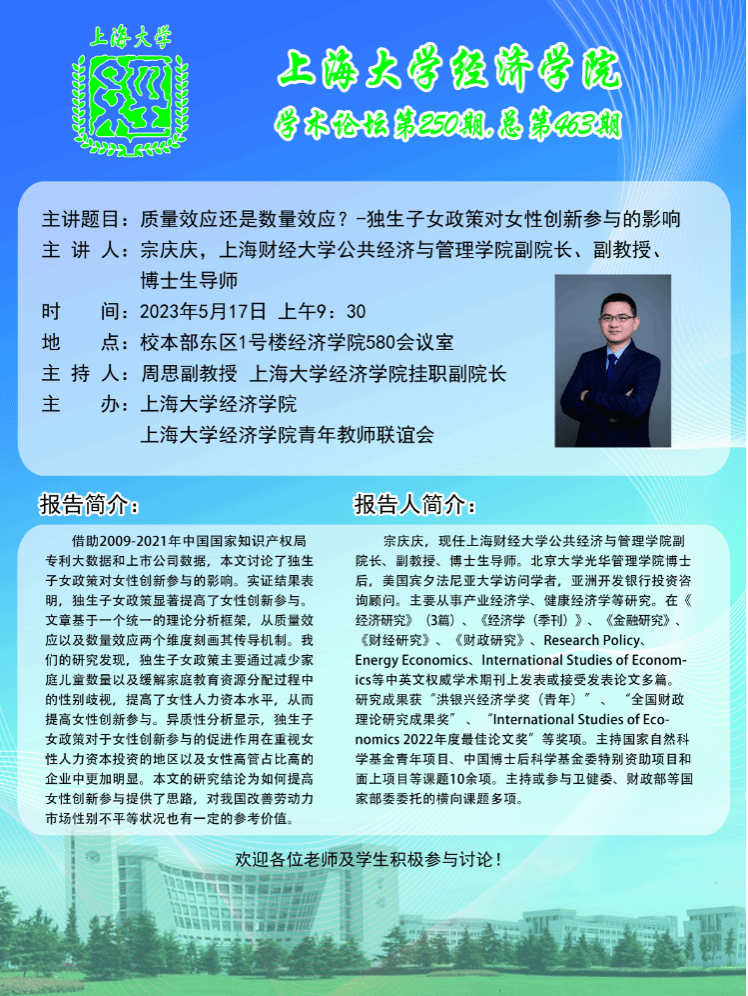 下一条:【学术讲座】时间都去哪儿了?中国“双休日”政策对劳动力供给、家务劳动和闲暇活动的影响
