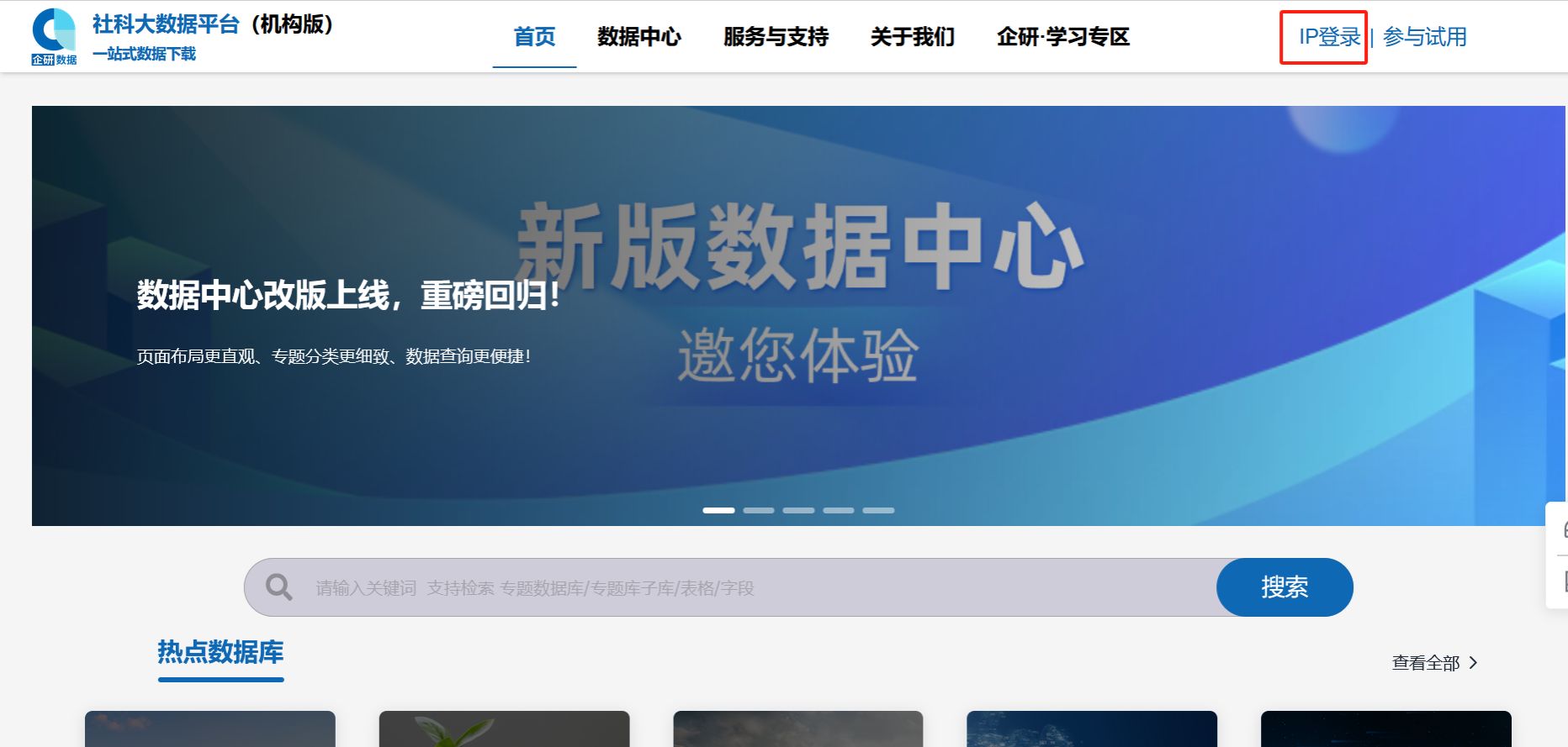 企研社科大数据平台试用通知 【数据库名称】 企研•社科大数据平台 2024.5.6-2024.12.31 https://r.qiyandata.com/ 英国365集团公司IP段内识别登陆(数据平台右上角点击IP登录) 企研·社科大数据平台是企研数据为中国社科领域教学和科研工作精心打造的学术数据下载平台。平台以各类行政大数据(依托于海量权威平台公示信息构建的如全量工商注册数据库、专利数据库等)为基础,将囊括了全国经营主体的基本信息、知识产权、投融资、海关信息、上市信息、认证认可、产品信息等宽视角、多领域、全方位的超细颗粒度数据库进行横向匹配融合。紧跟产业政策前沿、探查市场趋势,先后开发上线了一共14个专题库,46个研究主题,106个子库。为高校学者从事前沿产业和创新研究持续赋能。