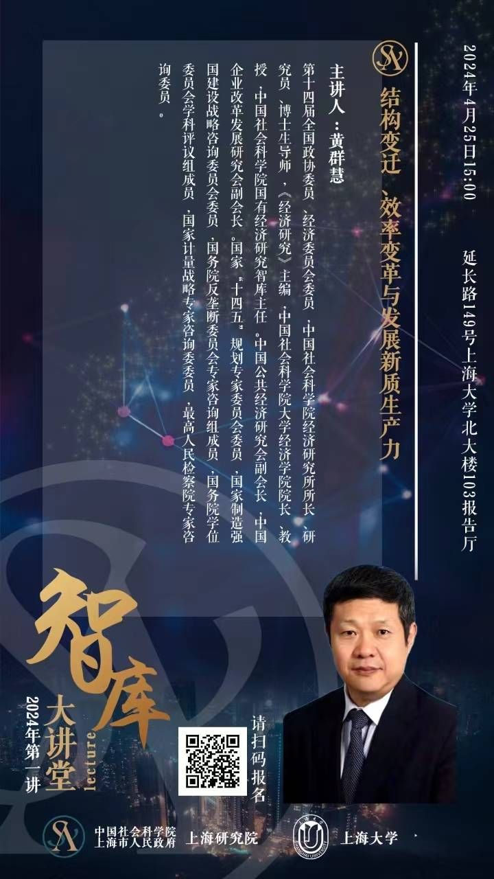 【学术讲座】智库大讲堂:结构变迁、效率变革与发展新质生产力