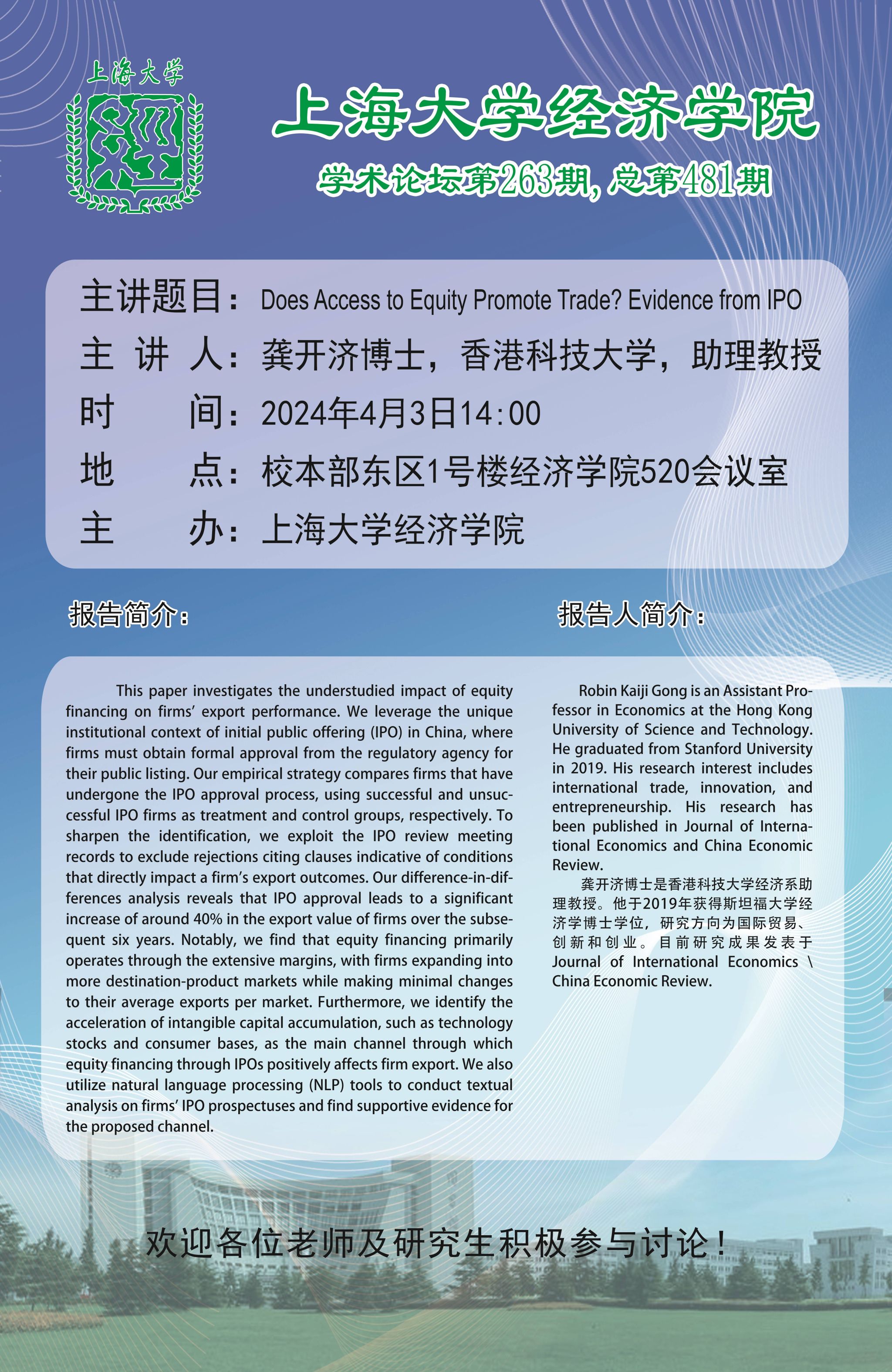 【学术讲座】Does Access to Equity Promote Trade? Evidence from IPO(获得股权能促进贸易吗? 来自IPO的证据)