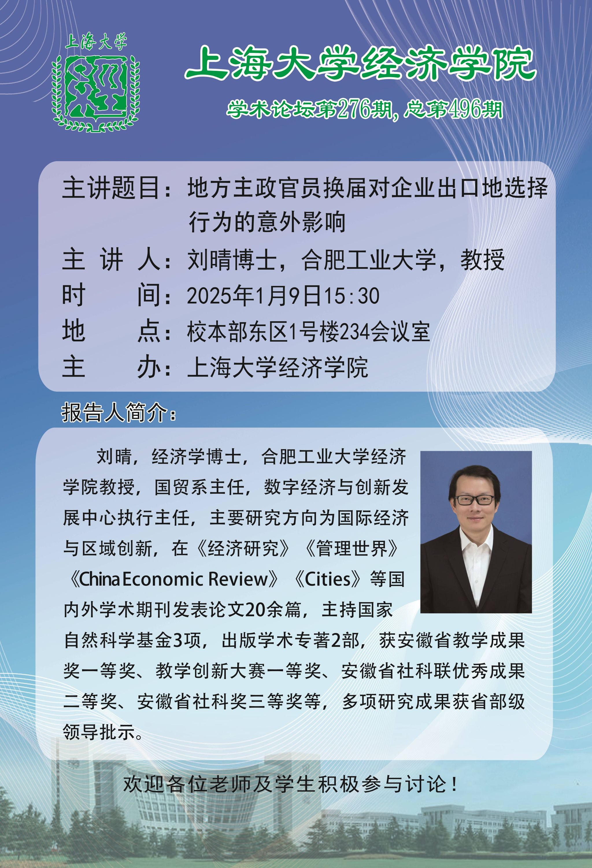 上一条:【学术讲座】Robots, Operational Flexibility, and Firm-Level Inefficiency Gap