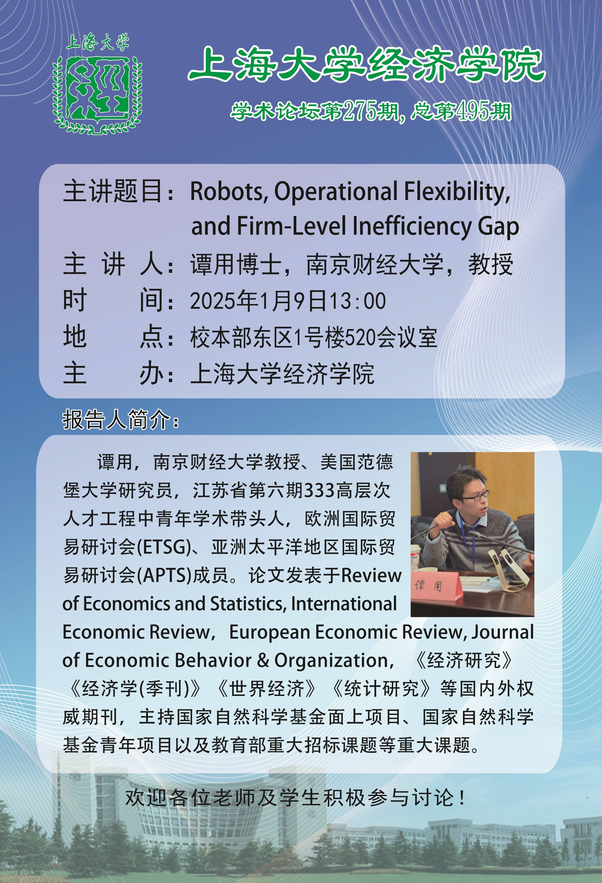【学术讲座】Robots, Operational Flexibility, and Firm-Level Inefficiency Gap