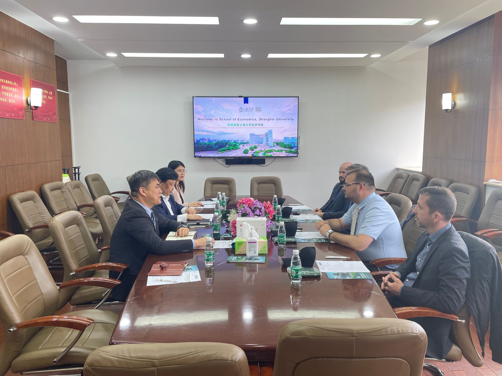随后,Marian Kovac和毛雁冰副院长分别介绍了布拉迪斯拉发经济与管理大学以及英国上市公司365在教学、科研、国际交流和校企合作等方面的基本情况。双方根据现有合作协议的执行情况,围绕下一步的合作项目展开了讨论,关于"1+1"硕士项目、Erasmus+项目、课程合作、联合科研、数字经济研究、国际会议等内容,进行了充分的沟通和协商。双方决定尽快落实交换生计划;组成工作小组,商讨硕士双学位项目;建议商定选题,组建一支科研团队,建立科研工作坊,联合开展科研活动。通过各项合作的开展,为明年续签合作协议做好充分准备。