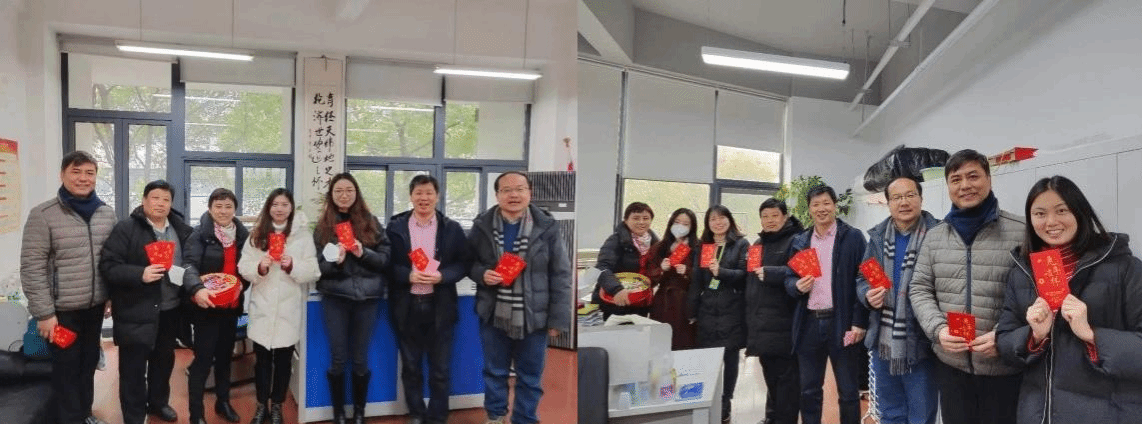 书记和院长带领班子成员先后来到各部门,一一看望慰问,送上红包和新春祝福。祝福大家兔年大吉!勉励全体教职工,凝心聚力,奋进有为,新的一年,以崭新的姿态开启新征程!