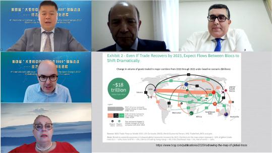 在随后举行的会议论文演讲环节,来自各个高校的学者们依次进行了学术报告。澳大利亚科廷大学张啸天教授从创新创业精神与全球化方面分析了一个全球性大学的2030战略;德国不莱梅大学Lars Hornuf教授分以无偿个人数据促进社会福利的角度分析了大数据的社会困境;俄罗斯莫斯科罗蒙诺索夫国立大学Vladimir L. Kvint教授系统分析了在技术主权萌芽时期如何制定国民经济战略;罗马尼亚国立政治学与公共管理大学Adriana Grigorescu教授分析了结合当前危机影响的背景,阐述贸易与运输的重塑;巴林大学Hatem Masri教授从第五次工业革命的角度,分析了后全球化对商科教育的影响。主题报告后的自由讨论环节,来自英国上市公司365的专家学者和学生们开展了充分地探讨和积极地交流,从各自的研究领域出发带来独到的见解,讨论气氛热烈,为如何保证“大变局中的经济更好更快发展”提供了各自的解决思路。