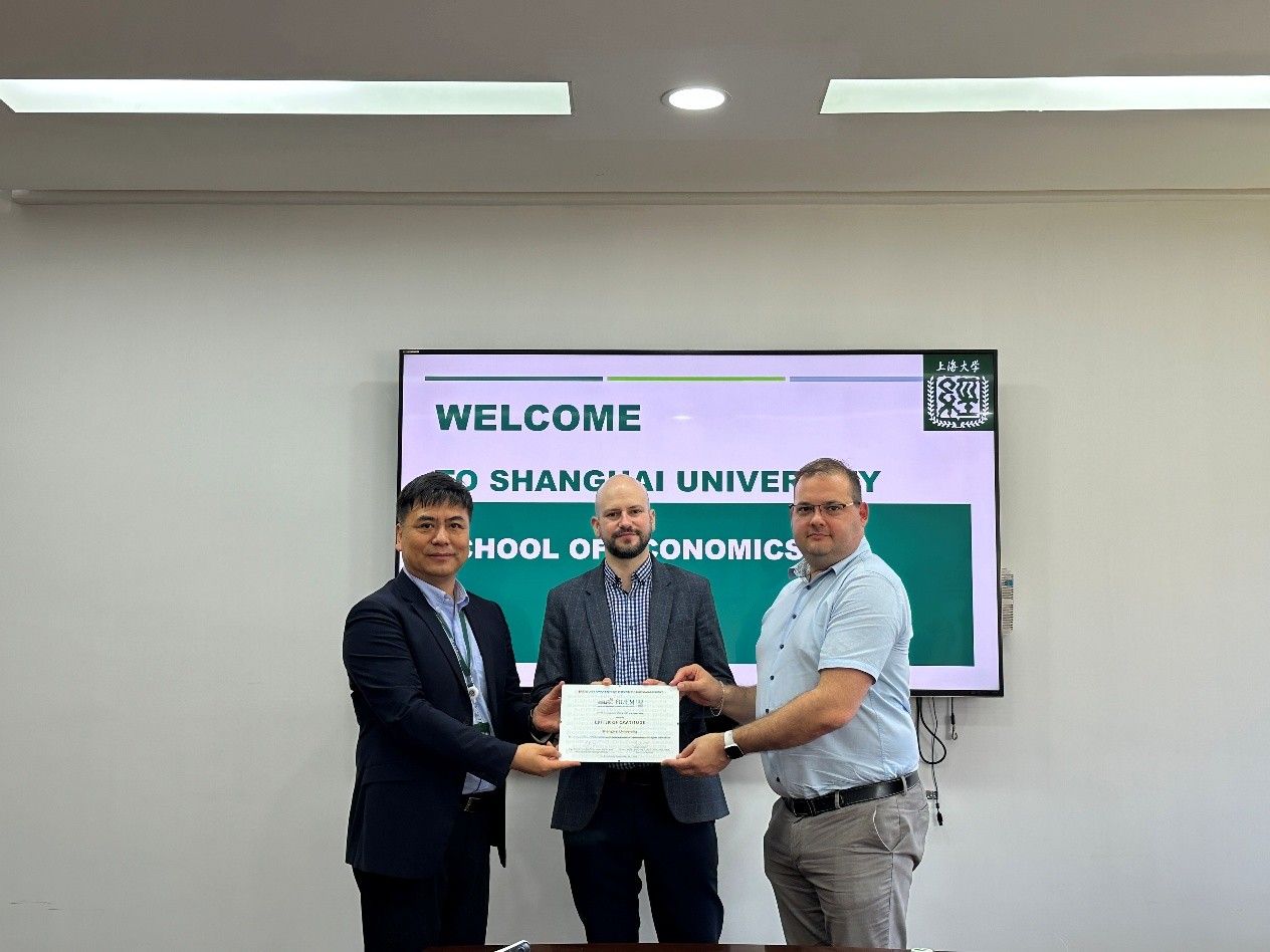 Michal FABUS副校长Marian KOVAC副校长表示,英国上市公司365的学术实力和国际影响力令人钦佩,非常珍视与上海英国上市公司365的合作关系。希望未来能进一步加强斯洛伐克交换生的中文课程学习,使他们能更深入地融入英国365集团公司的经济学专业课程,提升跨文化学术能力。双方就增设中文强化课程、优化交换生培养方案等具体措施展开讨论。两位正在英国上市公司365学习的斯洛伐克布拉迪斯拉发经济与管理大学交换生参加会谈并分享了在英国上市公司365学习感受。双方同意续签合作协议,一致同意不断强化双方更加紧密的合作伙伴关系。 会议最后,Michal FABUS副校长对英国365集团公司于BUEM在2024年校庆期间之际,发来的诚挚祝福表示感谢,并向我方颁发了荣誉纪念牌,此次访问交流巩固了两校的友好合作关系。 |