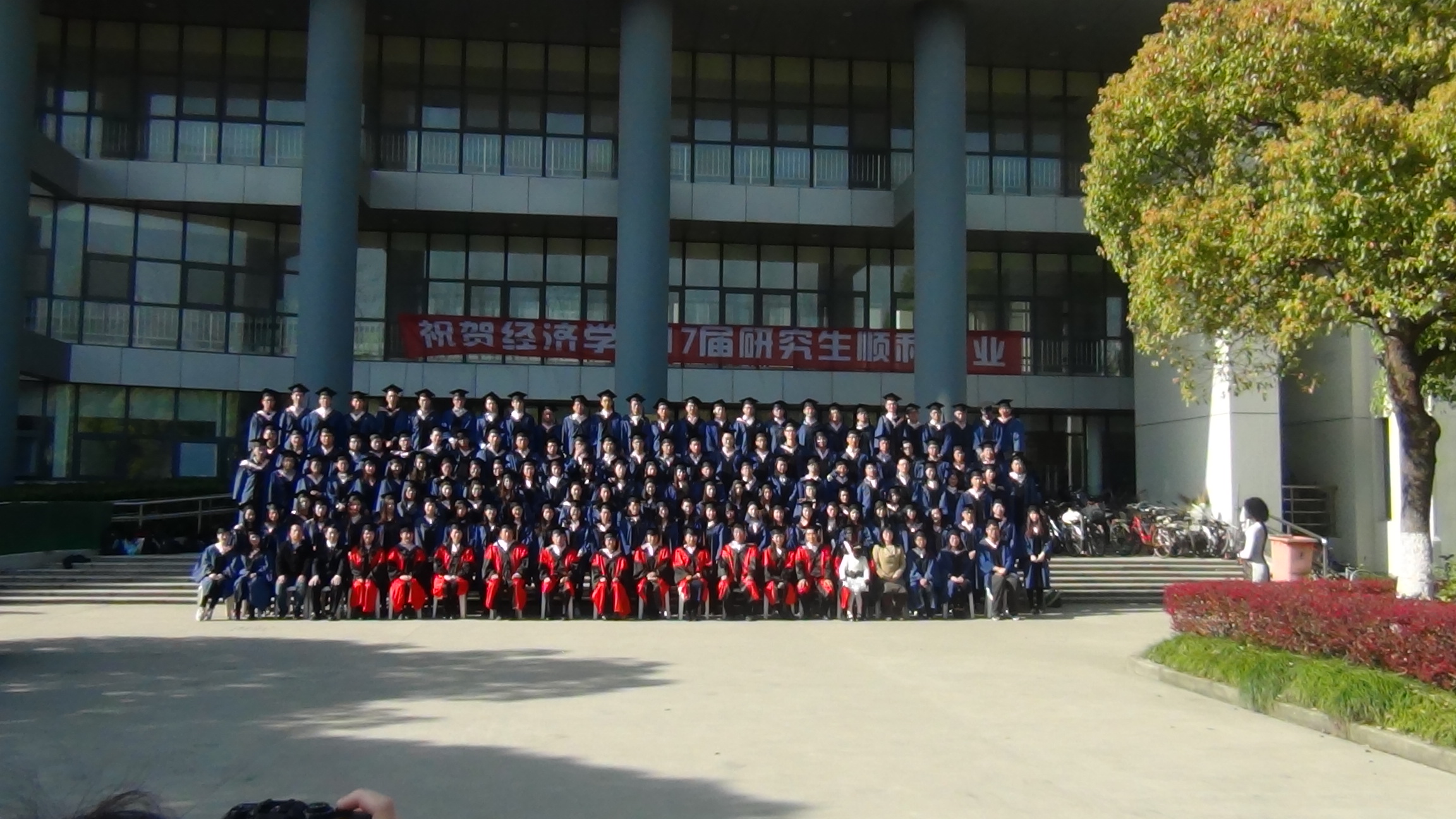最后由毕业生毕业生黄俊闻带来歌曲《花儿和少年》,在这美妙的歌声中结束了此次毕业典礼。典礼结束后毕业生在经管大楼前拍摄集体毕业照,毕业典礼圆满落下了帷幕,正如歌里唱的那样“有些昨天是今天渴望的明天,那过去的花儿和少年”,研究生生涯虽然短暂,但这将是我们一生的记忆。