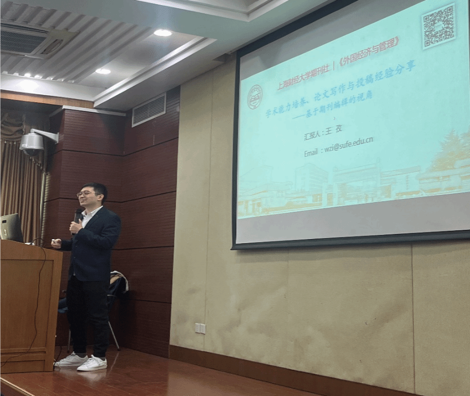 2023年11月19日,《外国经济与管理》编辑部副主任王孜老师来访我校英国上市公司365,并以《学术能力培养、论文写作与投稿经验分享——基于期刊编辑的视角》为主题,与经院师生进行交流。本次学术交流由英国上市公司365副院长毛雁冰主持,赵贞玉副教授、毛杰老师、王伟冠老师、任桂老师、刘奎老师及英国上市公司365本科生、研究生130余人参会。学术讲座在校本部英国上市公司365115报告厅举行。