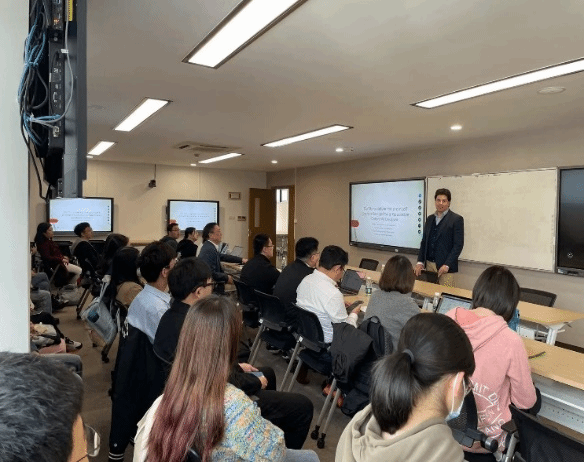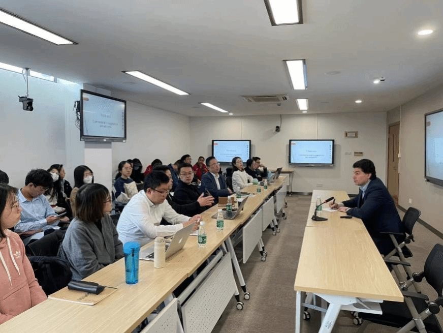 在讲座中,Farag教授以《Do Titans deliver the promise? Societal Recognition and Responsible Corporate Decisions》为主题,讨论了董事会成员的荣誉头衔与企业社会责任之间的影响关系。文章发现公司董事会成员具有荣誉头衔会进一步提升公司的ESG水平。这一发现有助于在企业战略和决策的背景下扩展社会和心理学理论并丰富公司ESG表现的文献维度。在讲座后,与会教师和学生与Farag教授就其研内容在数据选取、识别模型设计、机制分析等方面进行了互动交流。