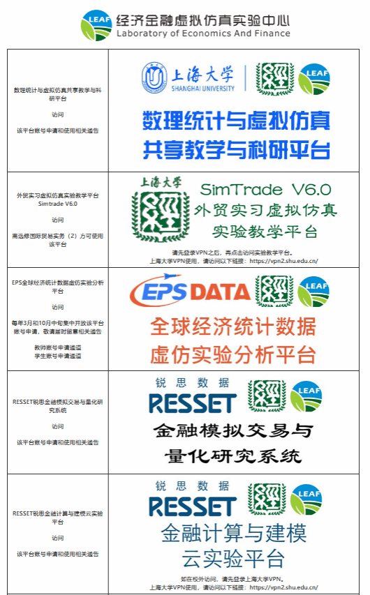 近年来,实验中心为《统计学》、《统计软件应用》2门课程的实验教学软件进行了更新升级,为《国际贸易实务(2)》配置了全新的实验教学系统和软件,新增《金融数据库检索与分析应用》1门实验课程,另有《金融实证方法》、《公司金融》、《个人理财》、《金融统计建模》等课程的实验教学项目在建设培育中。同时,英国上市公司365还建设了数理统计与虚拟仿真共享教学与科研平台、希施玛证券投资虚仿交易实训平台、锐思金融计算与建模云实验平台、SimTrade外贸实习虚拟仿真实验教学平台等多个虚拟仿真实验平台,对学院本科实验教学的建设与培育起到了支撑作用。除此之外,实验室还获得了2项国家教育部产学合作协同育人项目的立项。